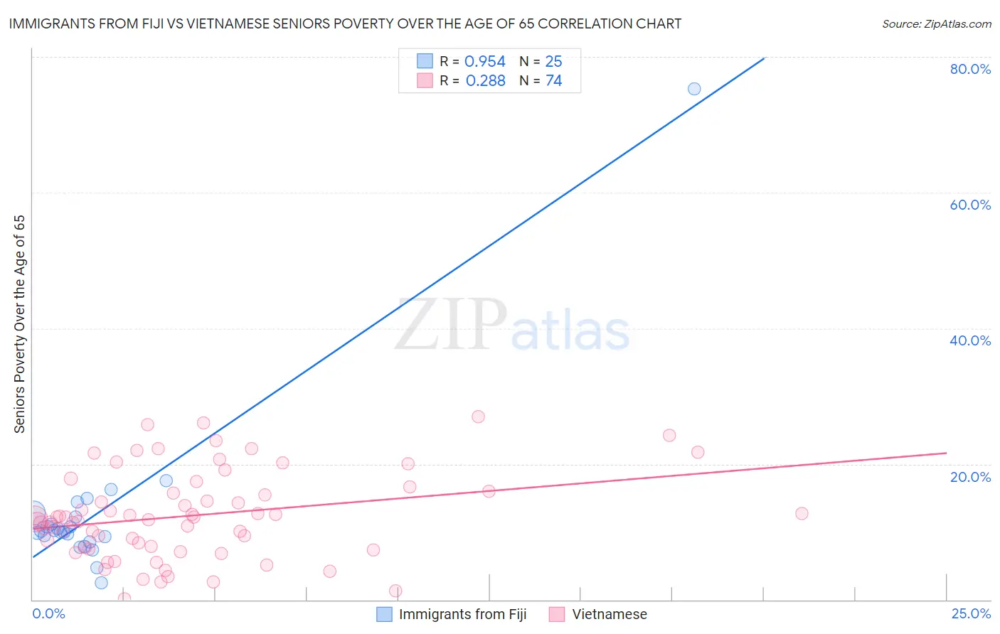 Immigrants from Fiji vs Vietnamese Seniors Poverty Over the Age of 65 Correlation Chart