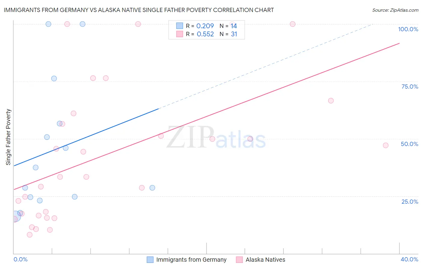 Immigrants from Germany vs Alaska Native Single Father Poverty Correlation Chart
