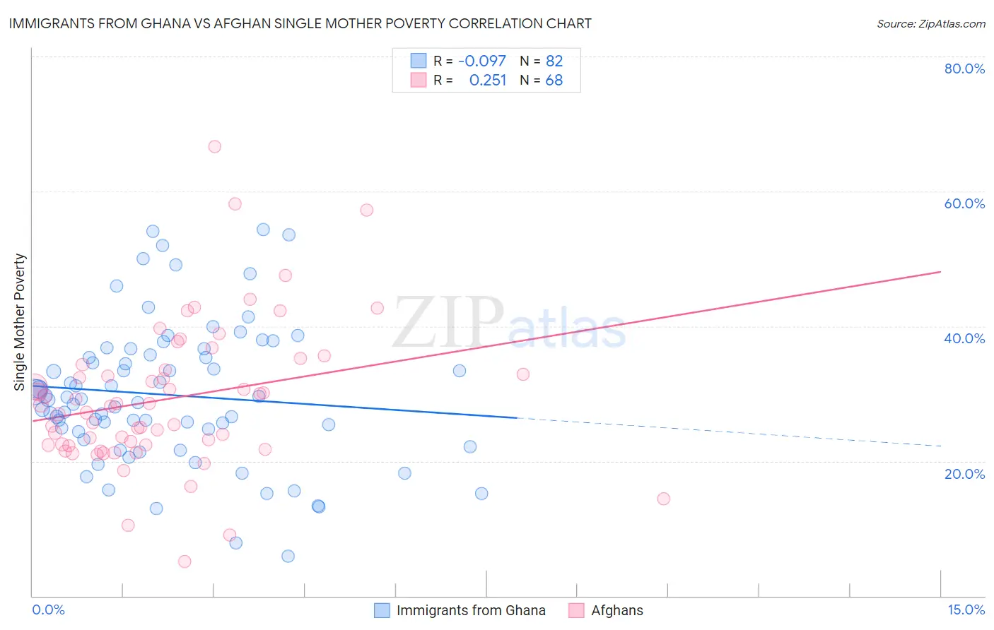 Immigrants from Ghana vs Afghan Single Mother Poverty Correlation Chart
