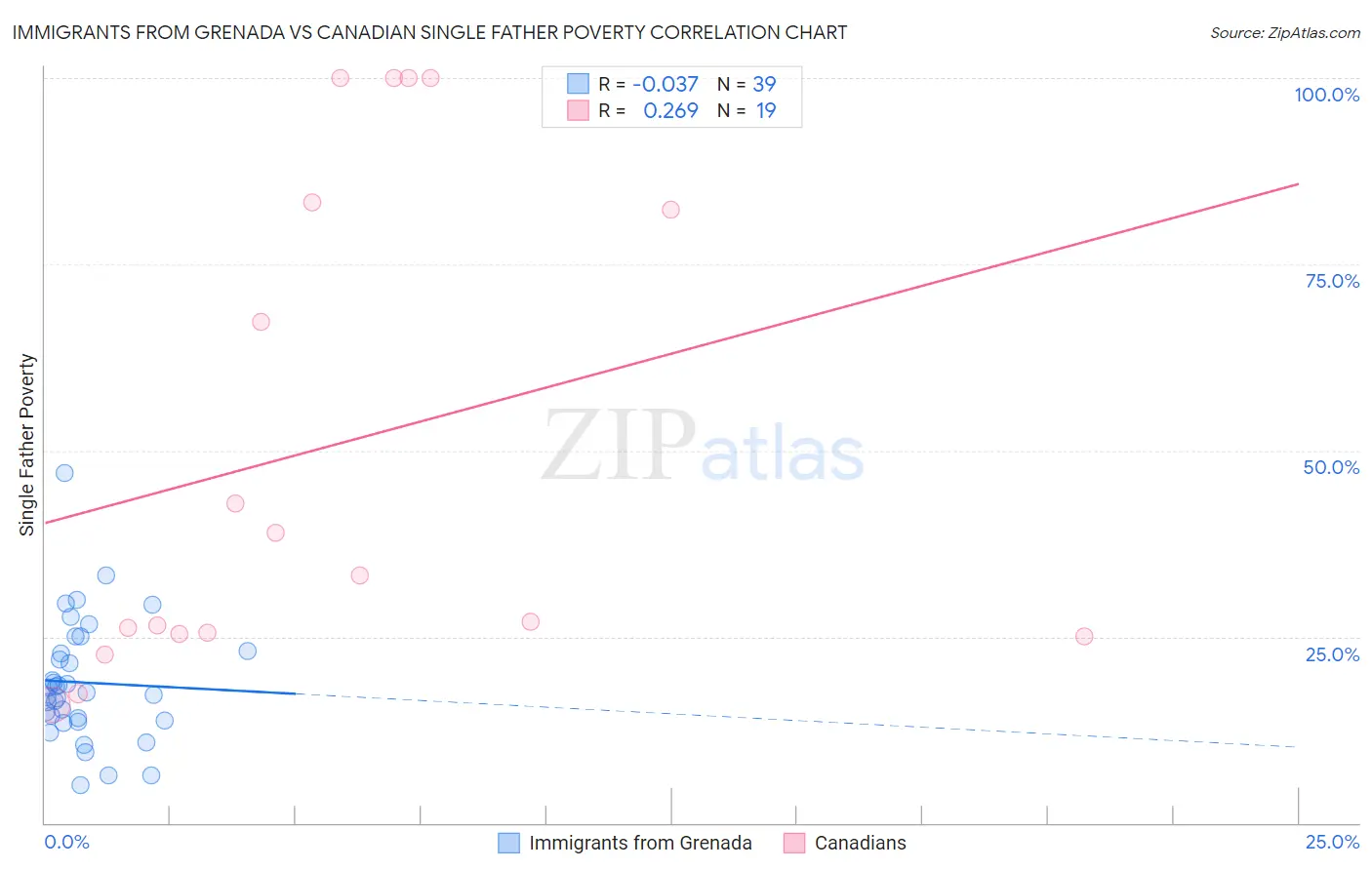 Immigrants from Grenada vs Canadian Single Father Poverty Correlation Chart