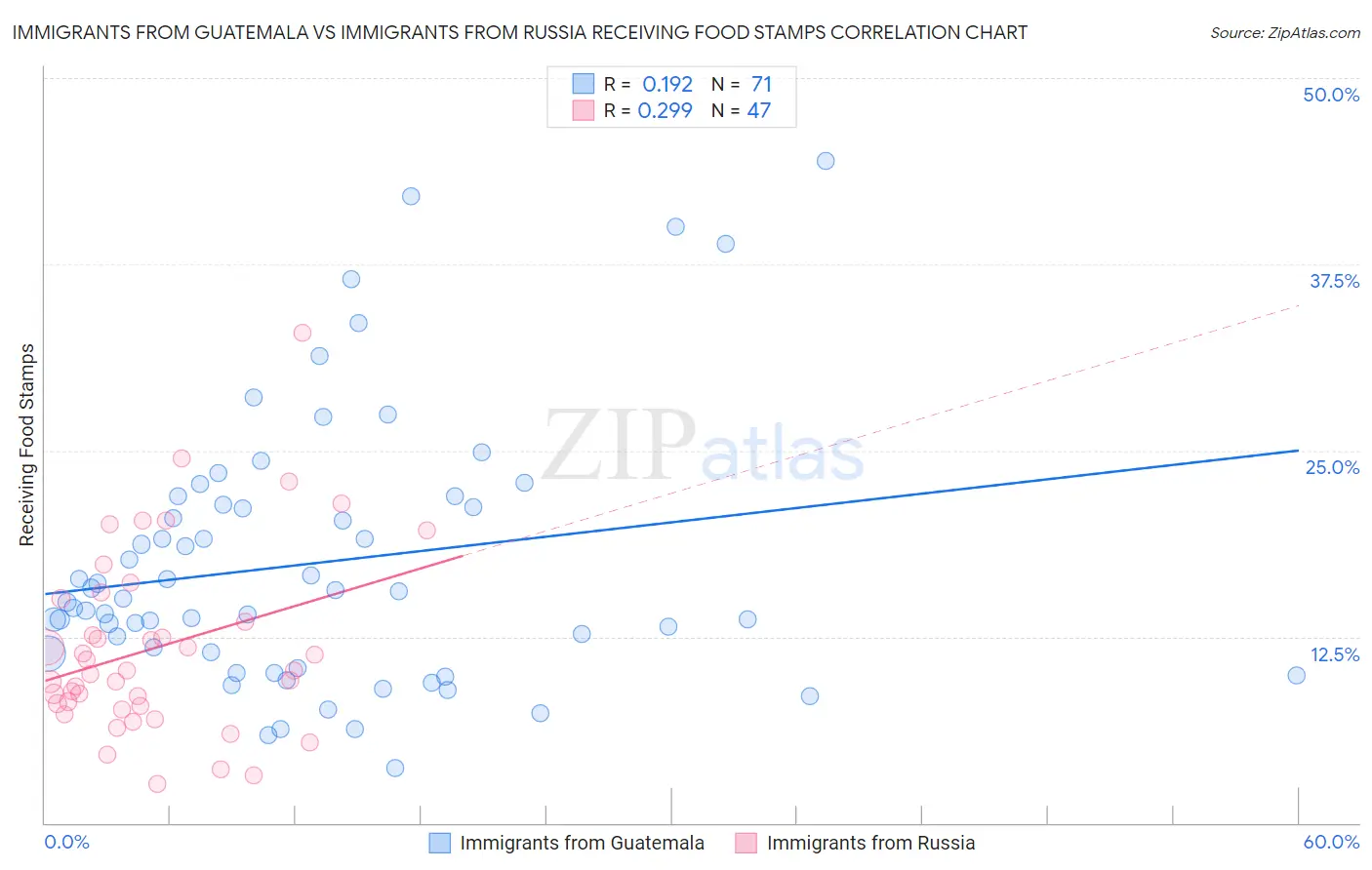 Immigrants from Guatemala vs Immigrants from Russia Receiving Food Stamps Correlation Chart