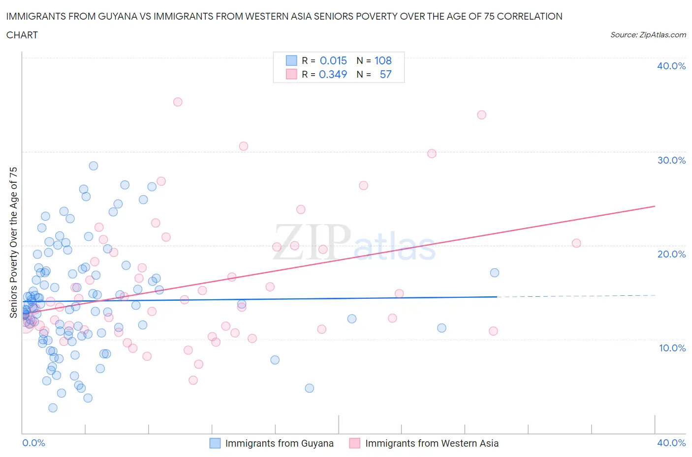 Immigrants from Guyana vs Immigrants from Western Asia Seniors Poverty Over the Age of 75 Correlation Chart