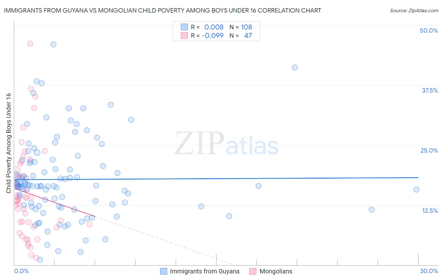 Immigrants from Guyana vs Mongolian Child Poverty Among Boys Under 16 Correlation Chart