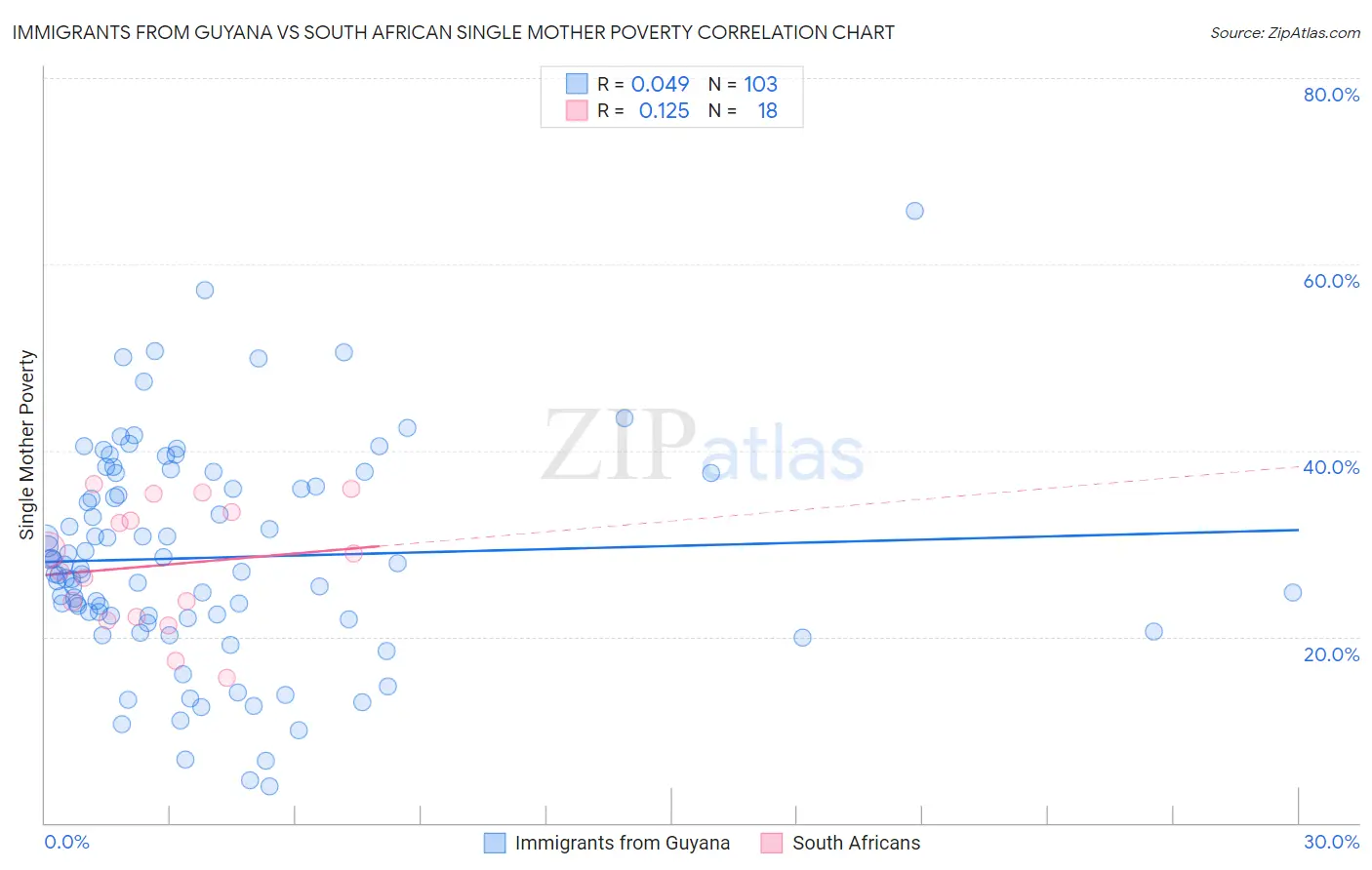Immigrants from Guyana vs South African Single Mother Poverty Correlation Chart