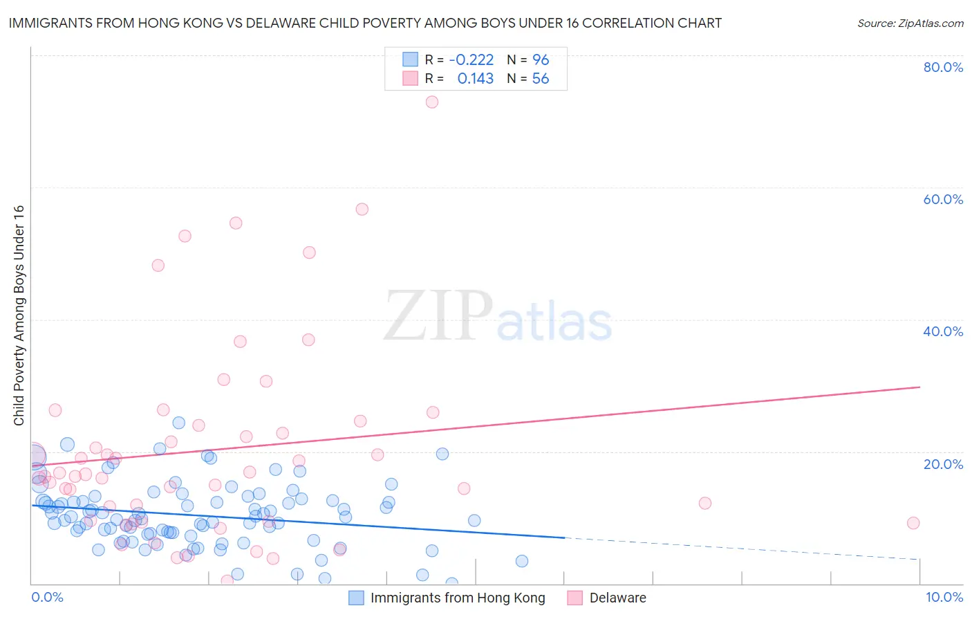 Immigrants from Hong Kong vs Delaware Child Poverty Among Boys Under 16