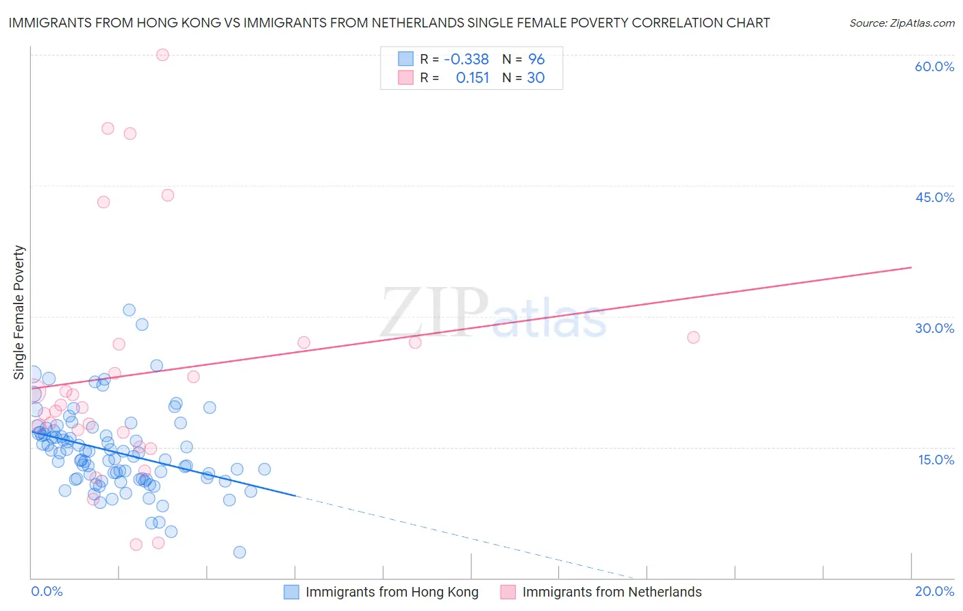Immigrants from Hong Kong vs Immigrants from Netherlands Single Female Poverty Correlation Chart