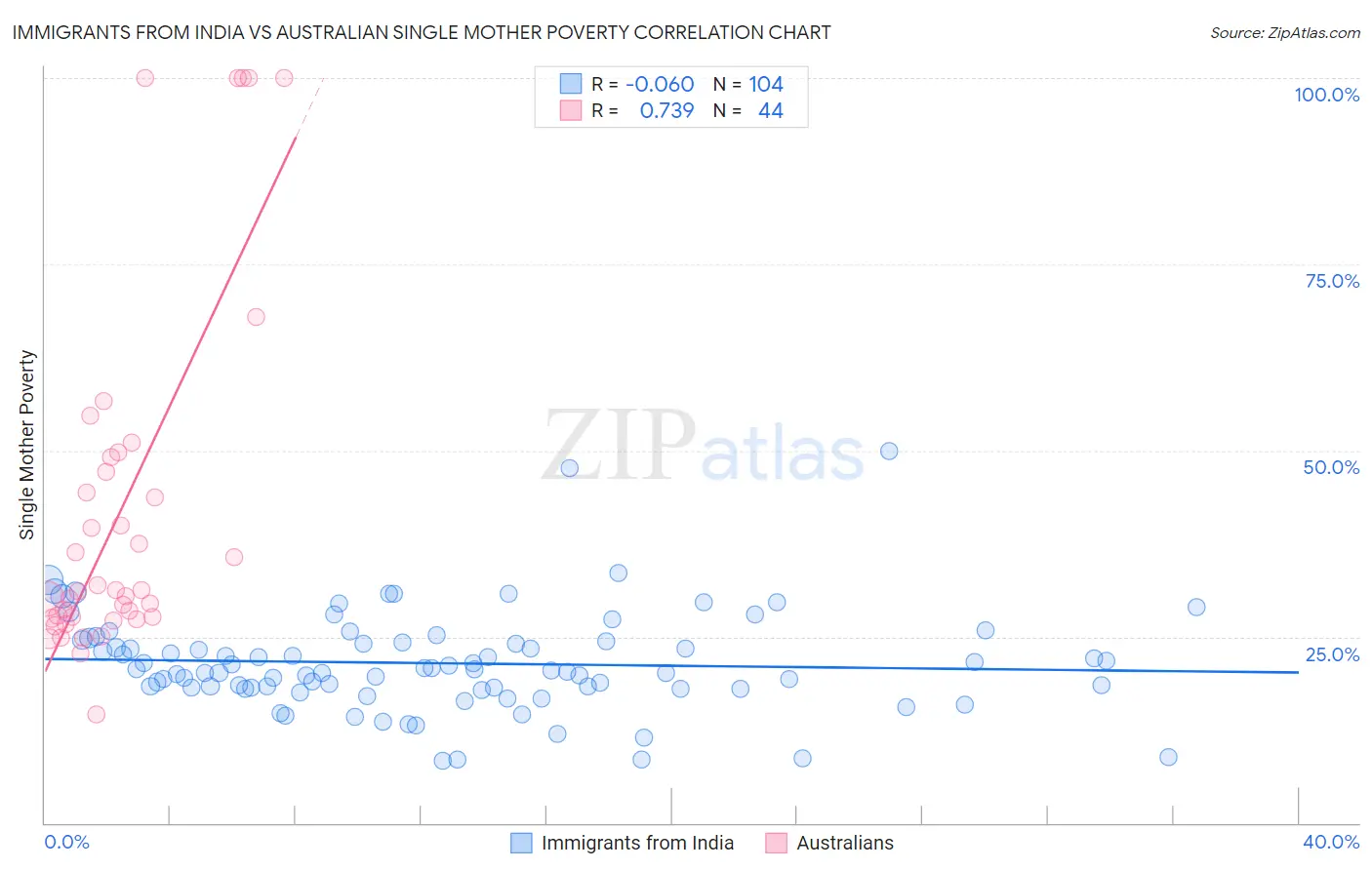 Immigrants from India vs Australian Single Mother Poverty