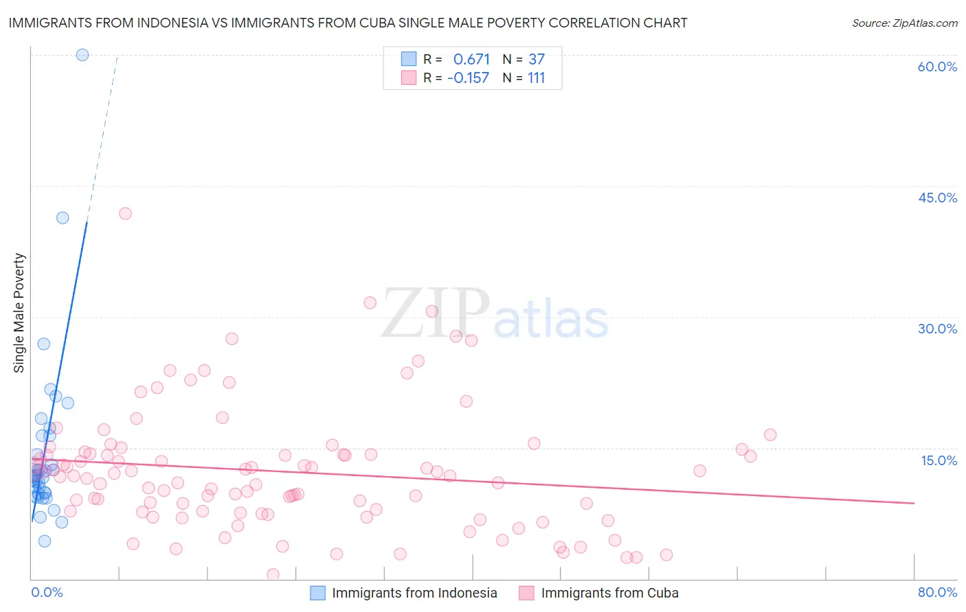 Immigrants from Indonesia vs Immigrants from Cuba Single Male Poverty Correlation Chart