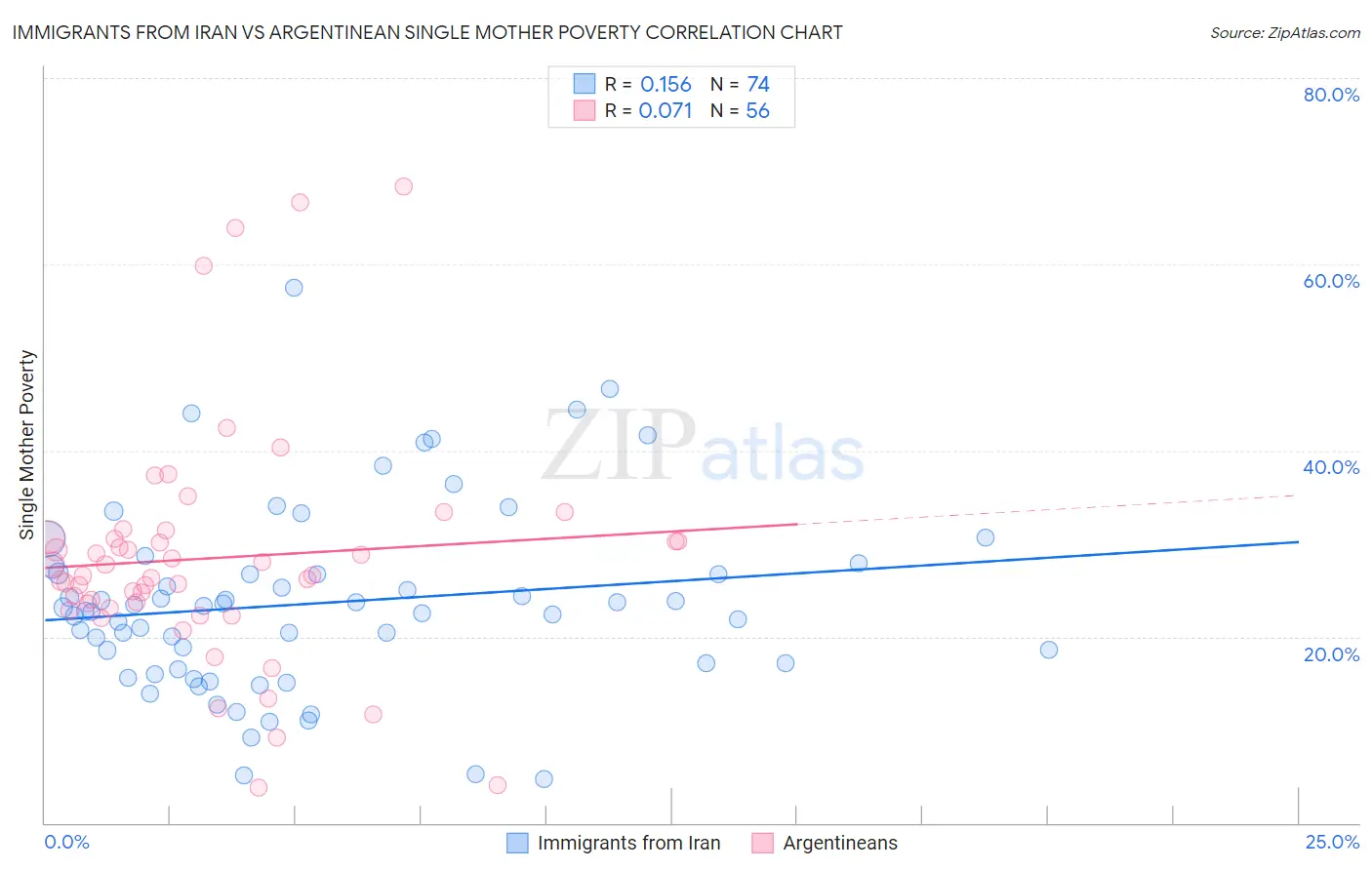 Immigrants from Iran vs Argentinean Single Mother Poverty Correlation Chart