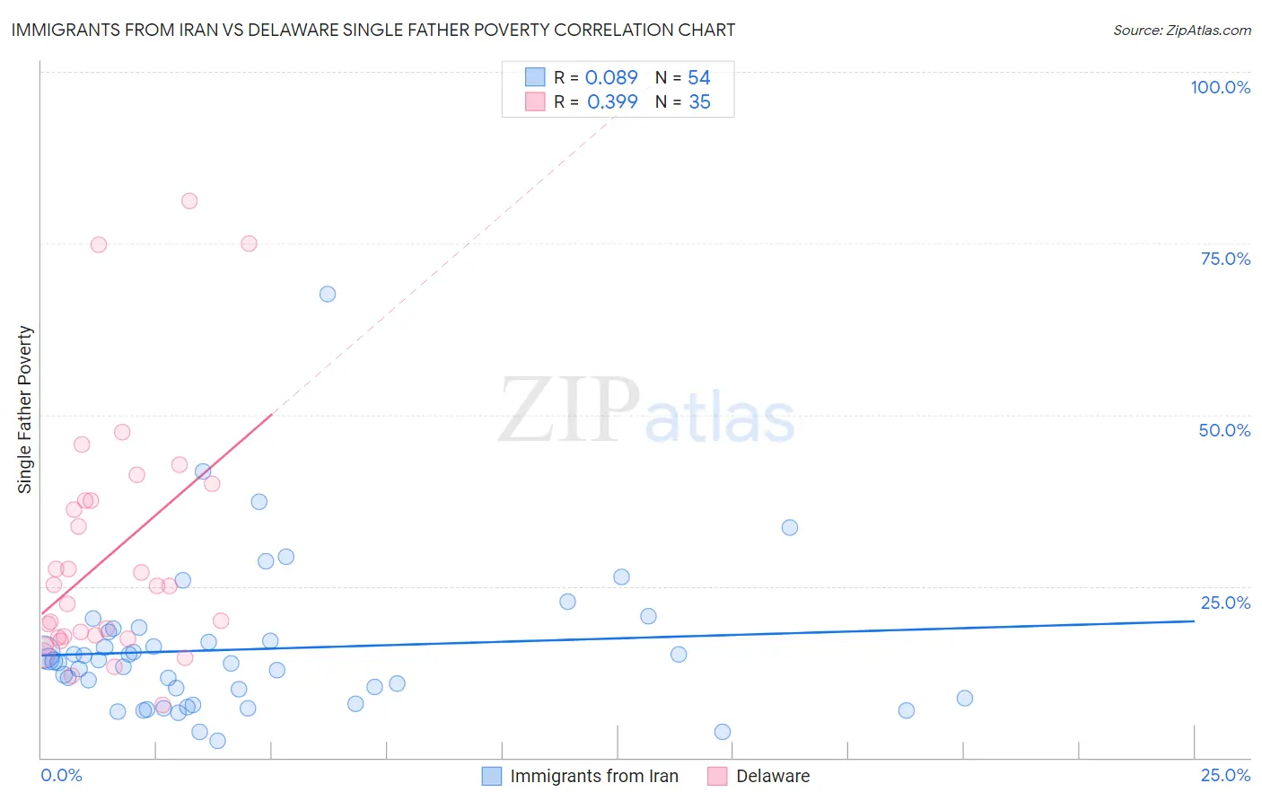 Immigrants from Iran vs Delaware Single Father Poverty Correlation Chart