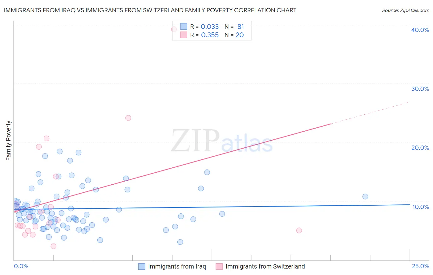 Immigrants from Iraq vs Immigrants from Switzerland Family Poverty Correlation Chart