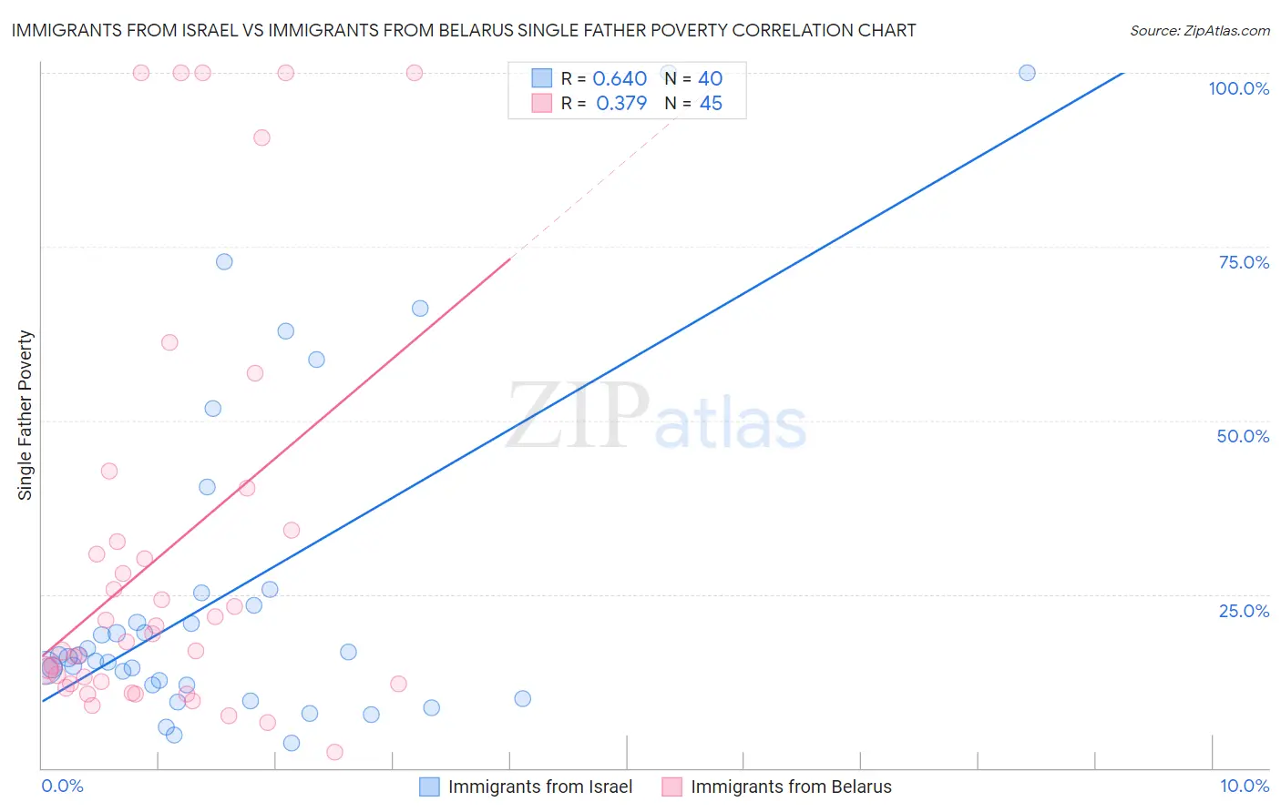 Immigrants from Israel vs Immigrants from Belarus Single Father Poverty Correlation Chart