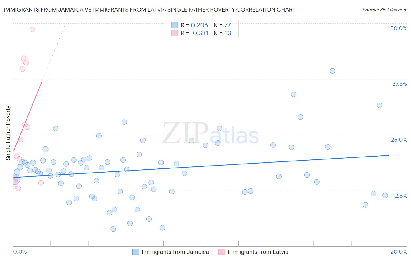 Immigrants from Jamaica vs Immigrants from Latvia Single Father Poverty Correlation Chart