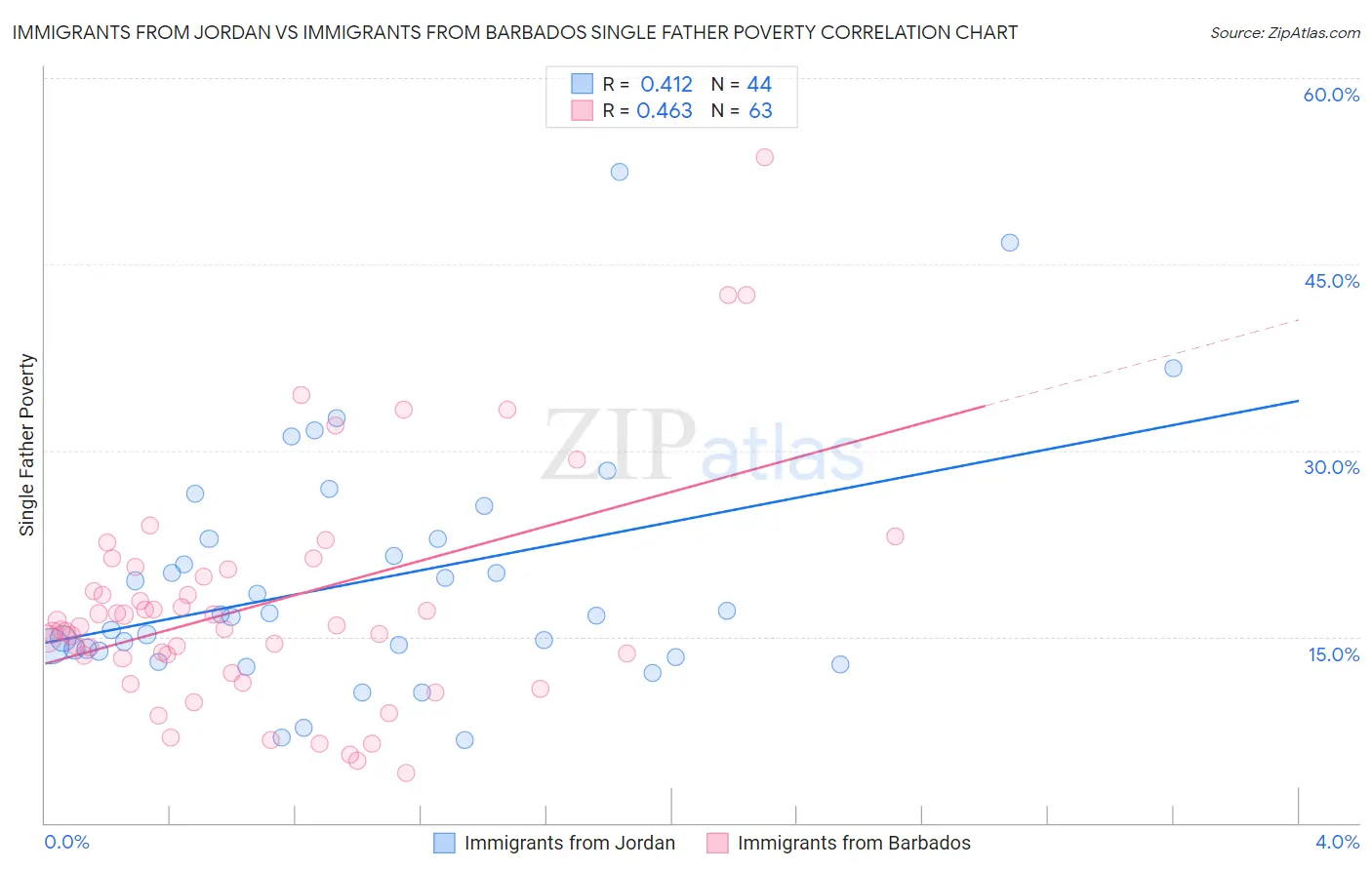 Immigrants from Jordan vs Immigrants from Barbados Single Father Poverty Correlation Chart