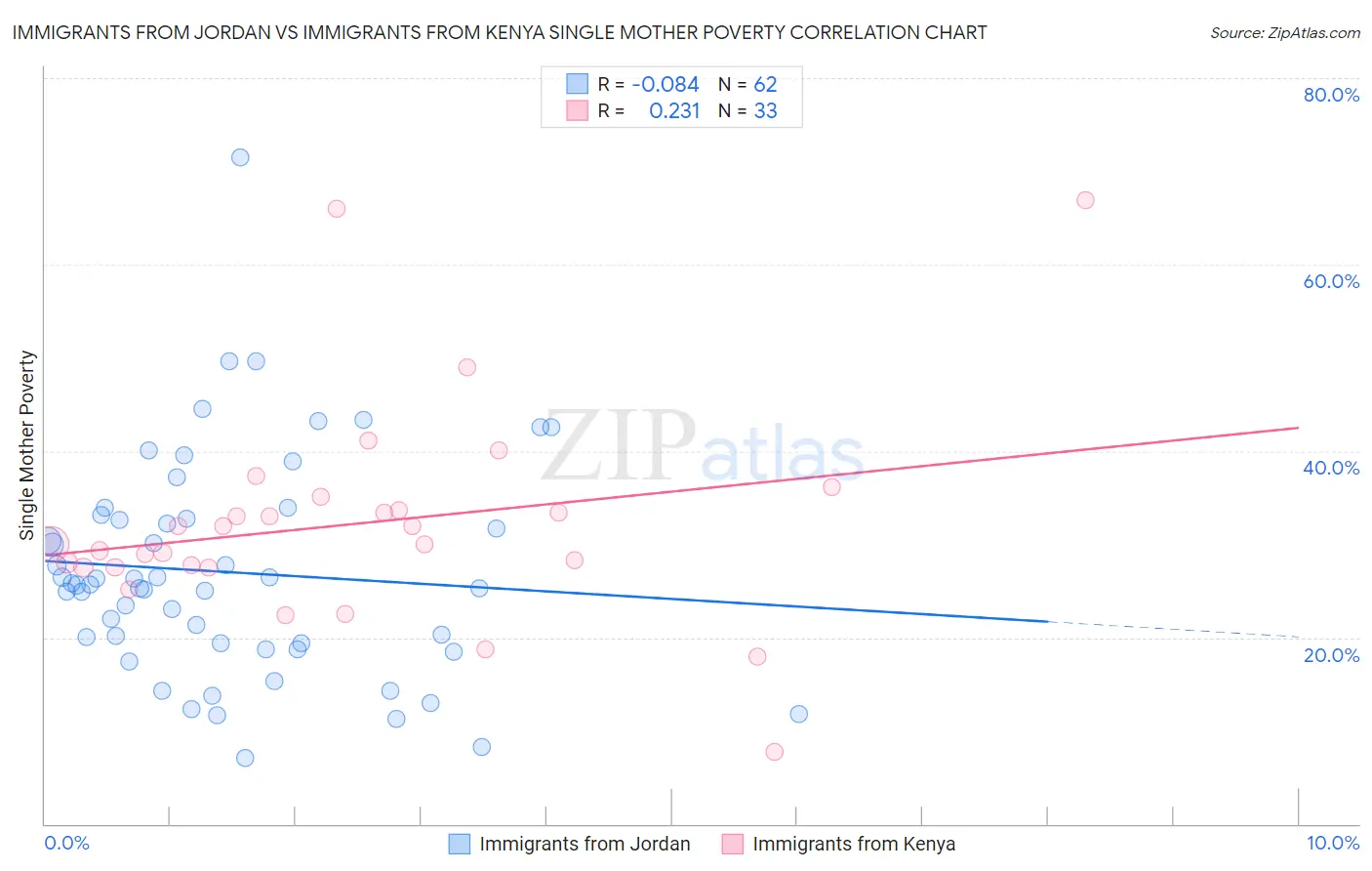 Immigrants from Jordan vs Immigrants from Kenya Single Mother Poverty Correlation Chart