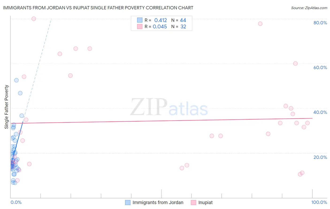 Immigrants from Jordan vs Inupiat Single Father Poverty Correlation Chart
