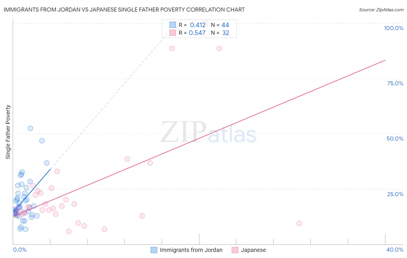 Immigrants from Jordan vs Japanese Single Father Poverty Correlation Chart