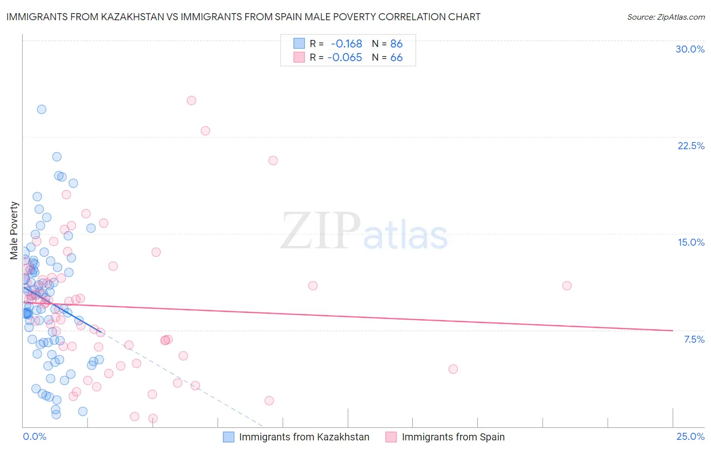Immigrants from Kazakhstan vs Immigrants from Spain Male Poverty Correlation Chart