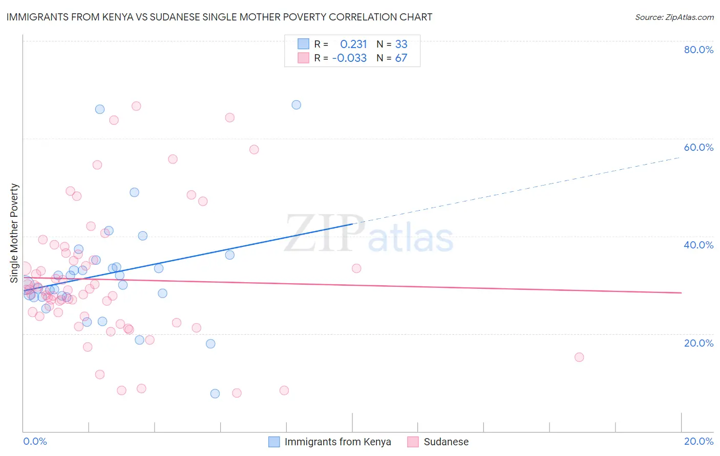 Immigrants from Kenya vs Sudanese Single Mother Poverty Correlation Chart
