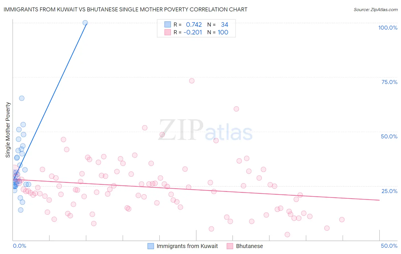 Immigrants from Kuwait vs Bhutanese Single Mother Poverty Correlation Chart