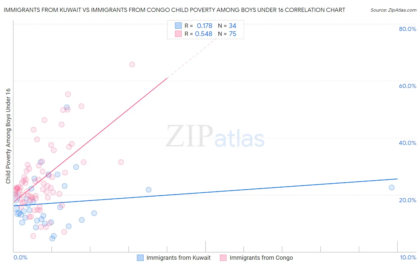 Immigrants from Kuwait vs Immigrants from Congo Child Poverty Among Boys Under 16 Correlation Chart