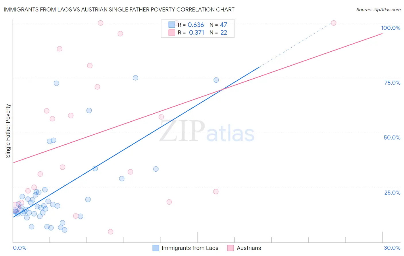 Immigrants from Laos vs Austrian Single Father Poverty Correlation Chart
