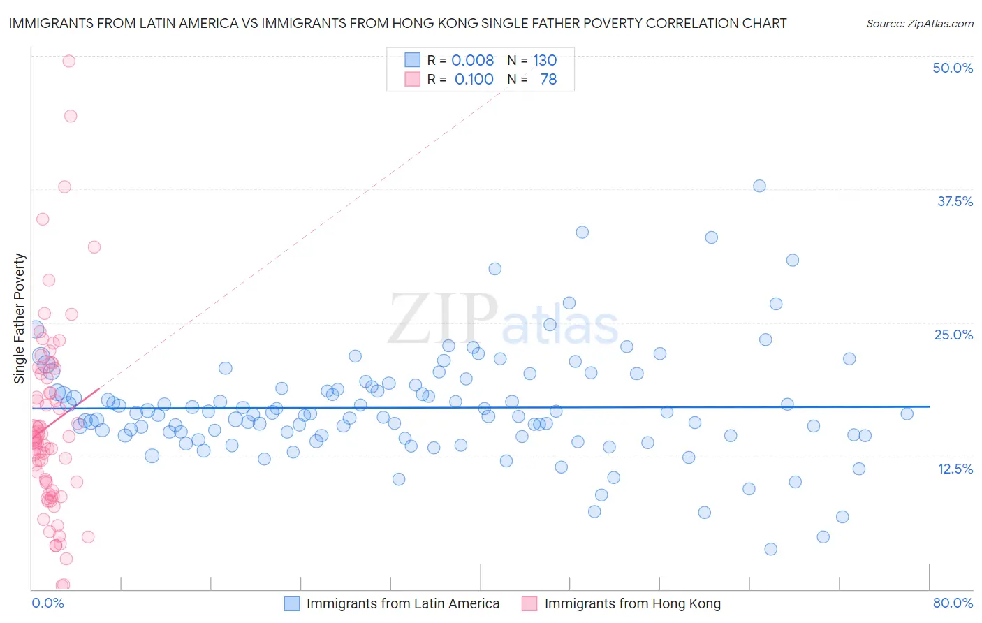 Immigrants from Latin America vs Immigrants from Hong Kong Single Father Poverty Correlation Chart