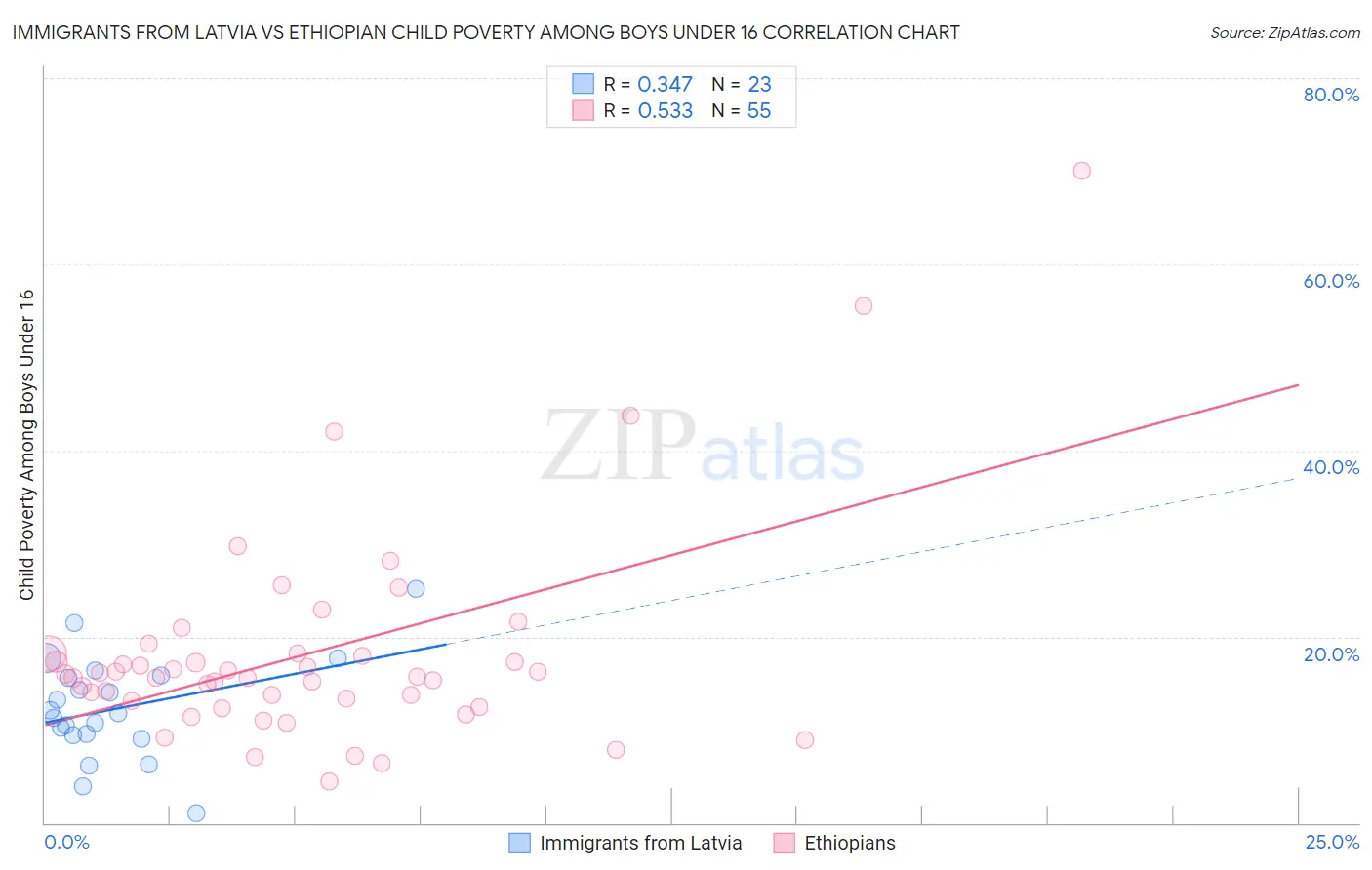 Immigrants from Latvia vs Ethiopian Child Poverty Among Boys Under 16 Correlation Chart