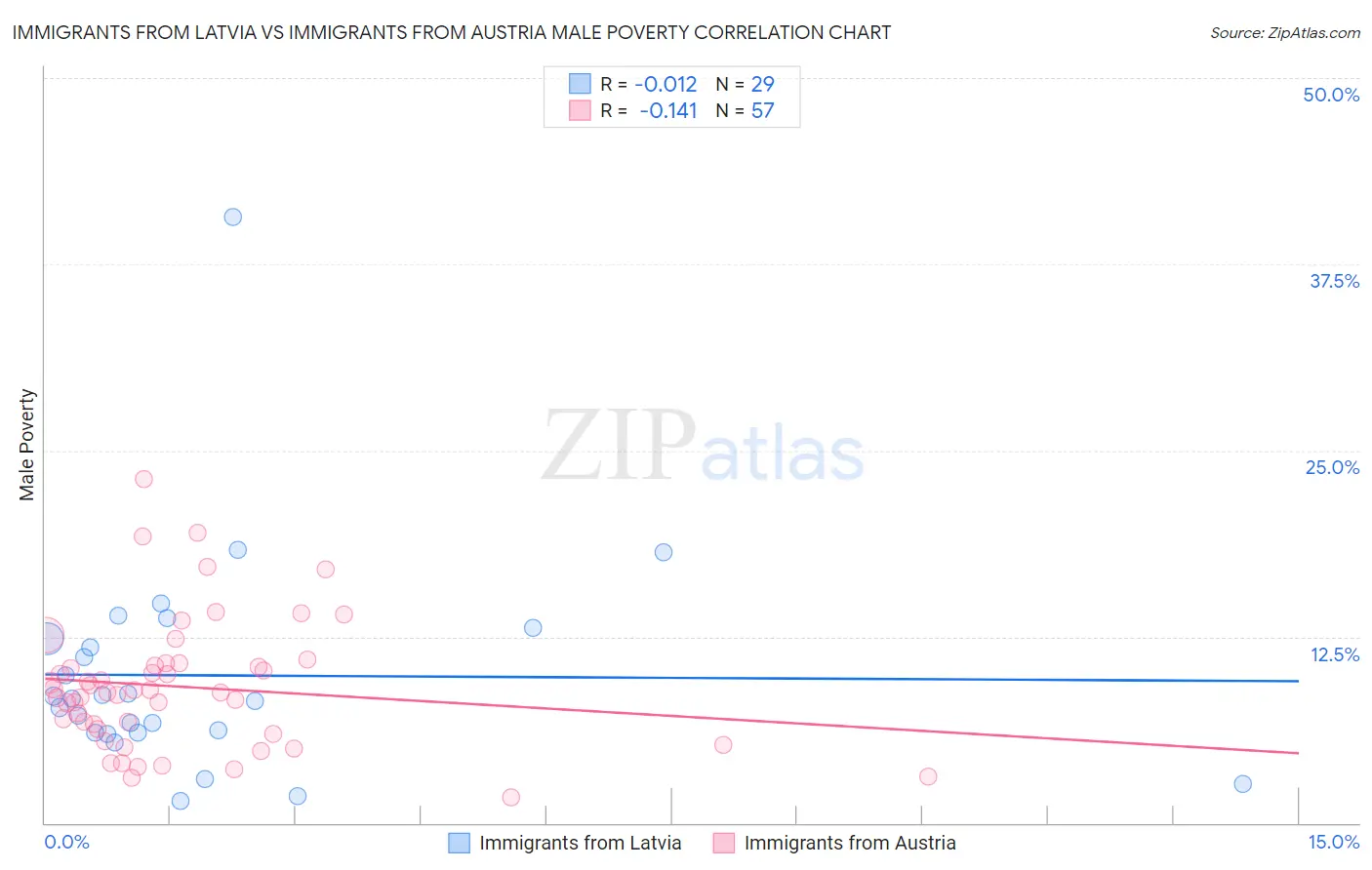 Immigrants from Latvia vs Immigrants from Austria Male Poverty Correlation Chart