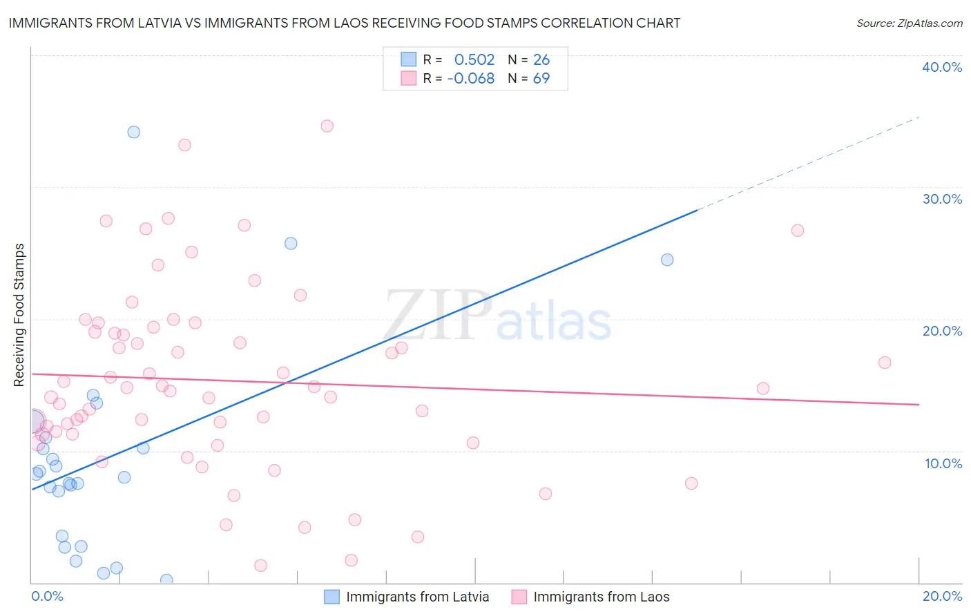 Immigrants from Latvia vs Immigrants from Laos Receiving Food Stamps Correlation Chart