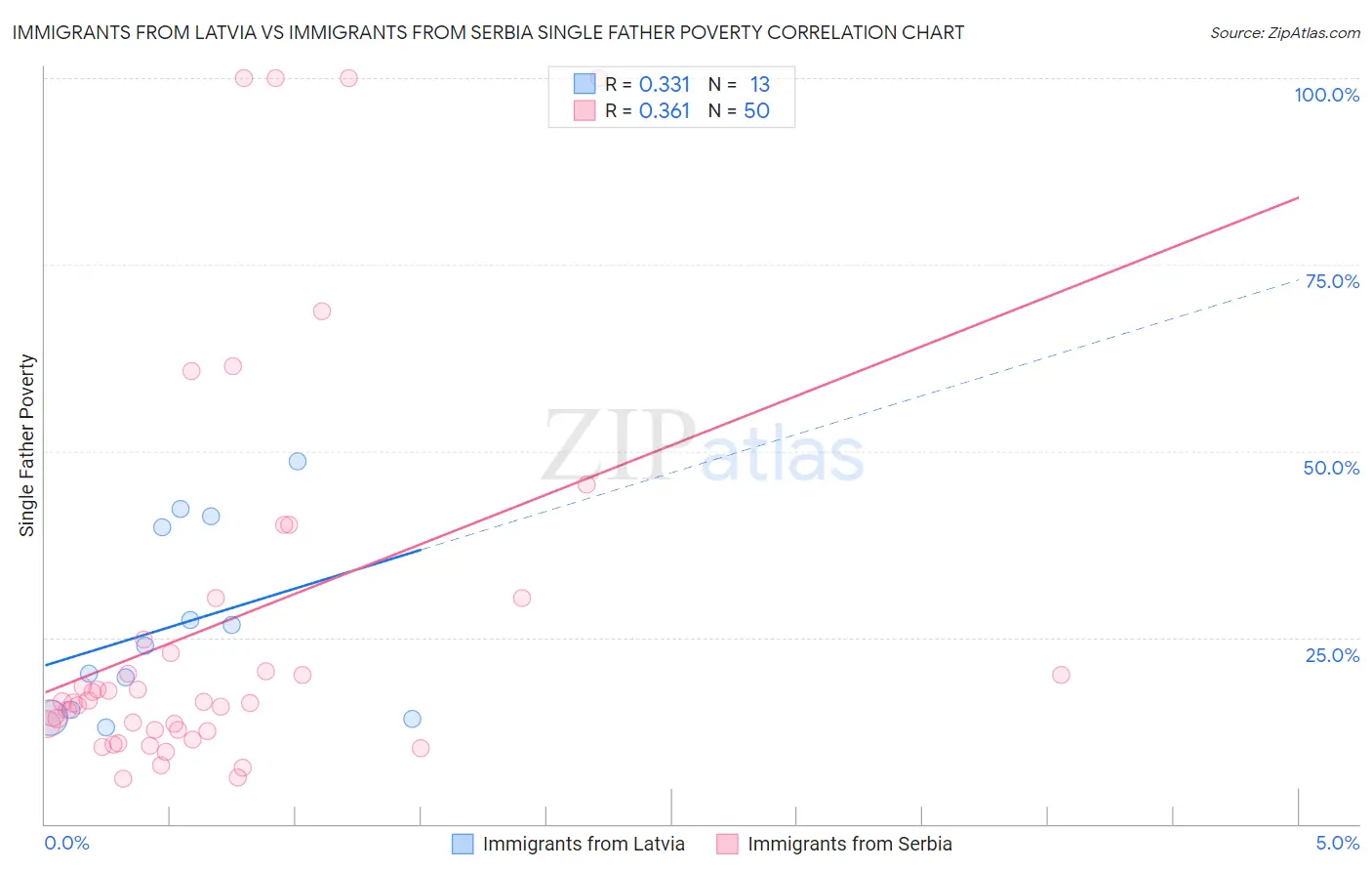 Immigrants from Latvia vs Immigrants from Serbia Single Father Poverty Correlation Chart