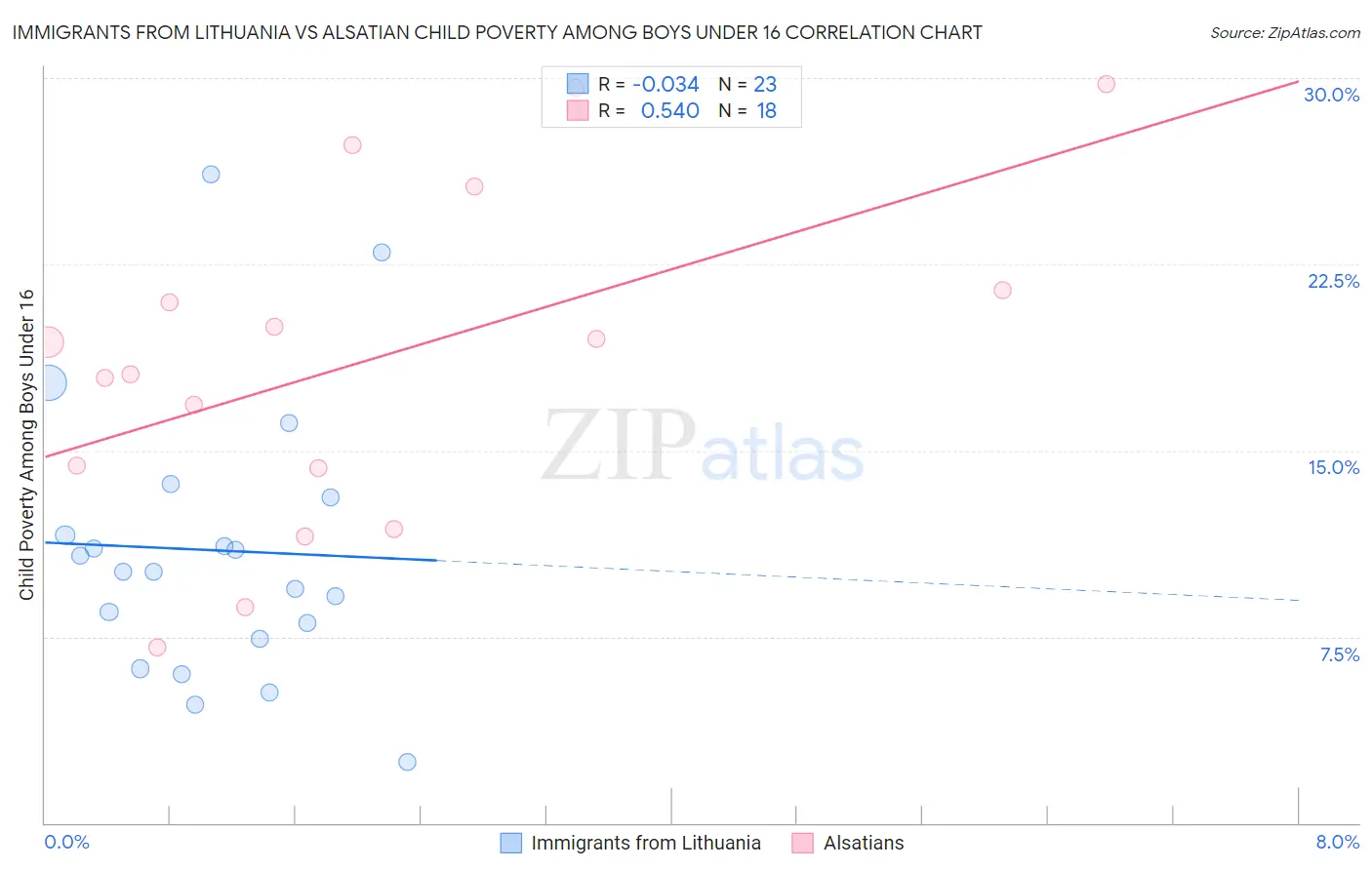 Immigrants from Lithuania vs Alsatian Child Poverty Among Boys Under 16 Correlation Chart