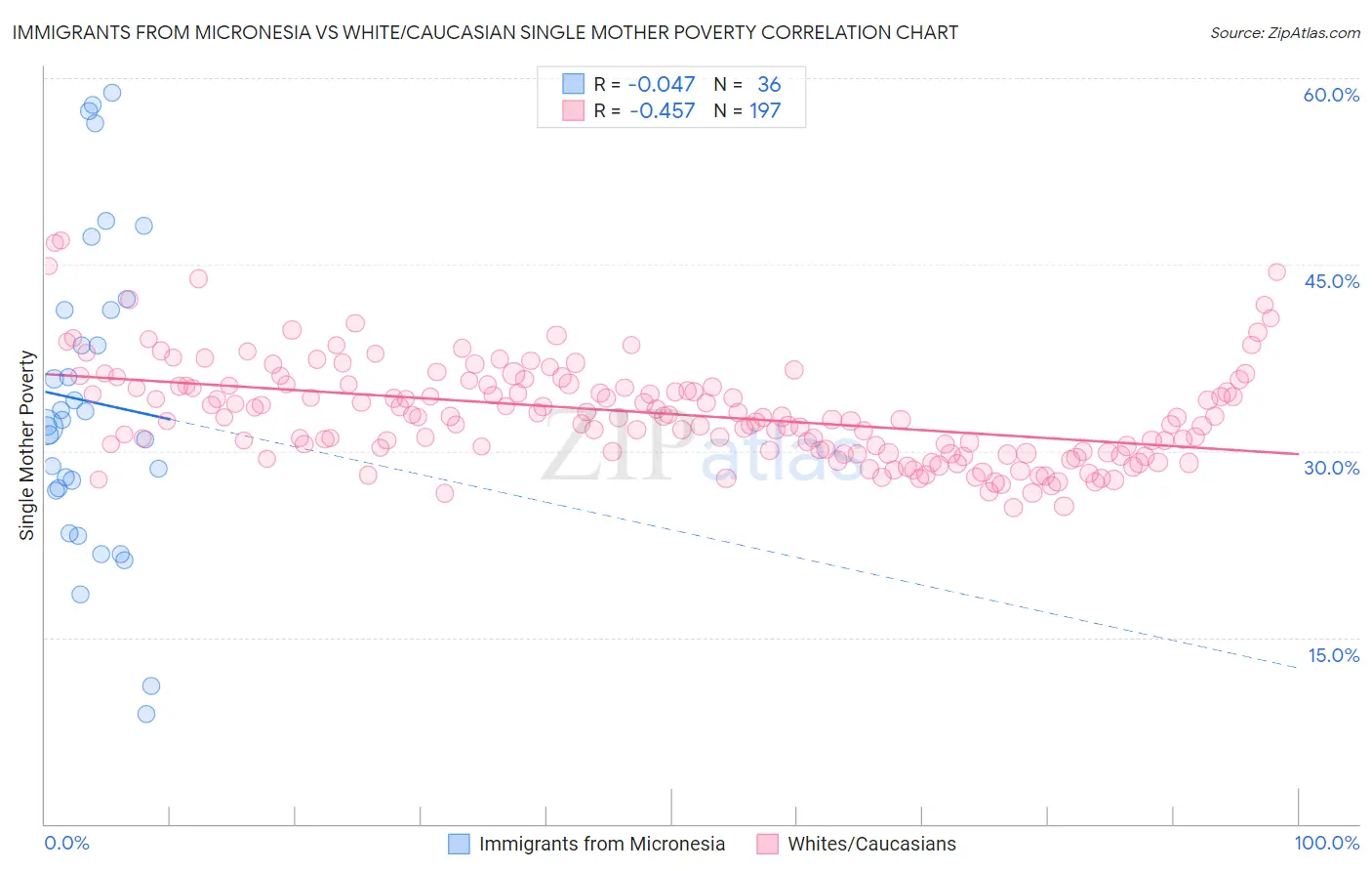 Immigrants from Micronesia vs White/Caucasian Single Mother Poverty Correlation Chart