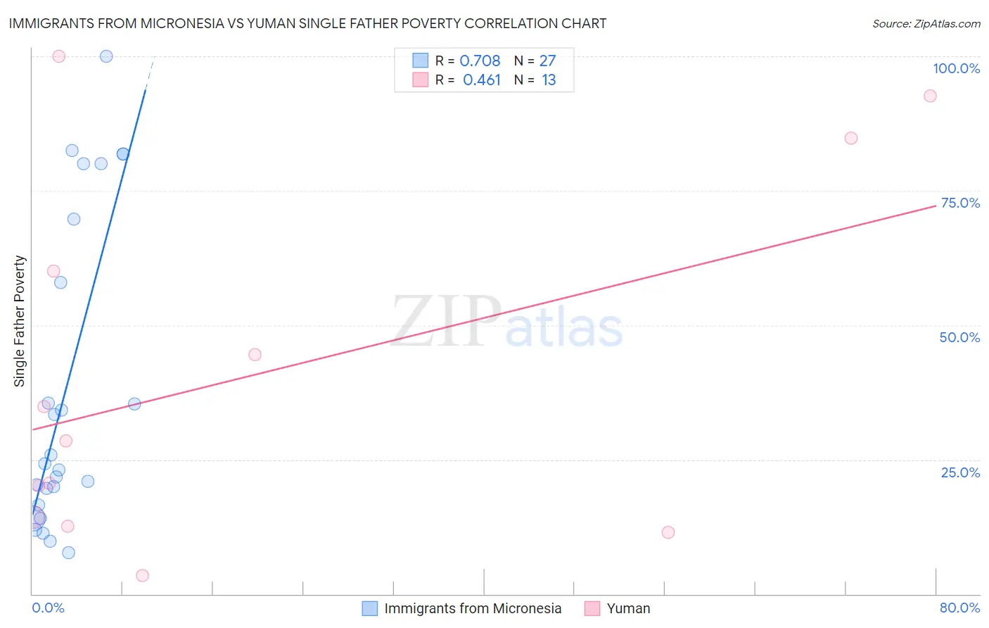 Immigrants from Micronesia vs Yuman Single Father Poverty Correlation Chart