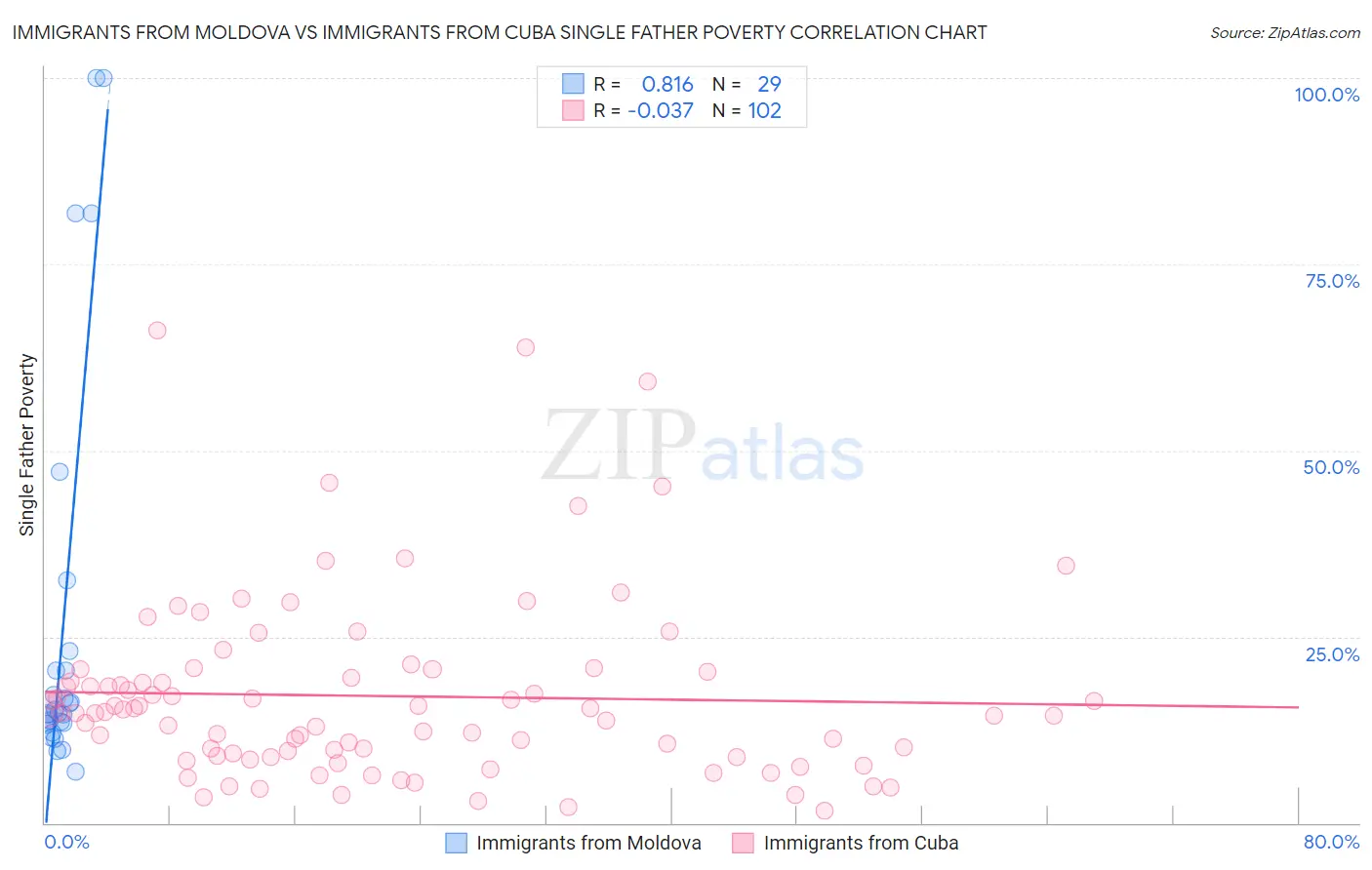Immigrants from Moldova vs Immigrants from Cuba Single Father Poverty Correlation Chart