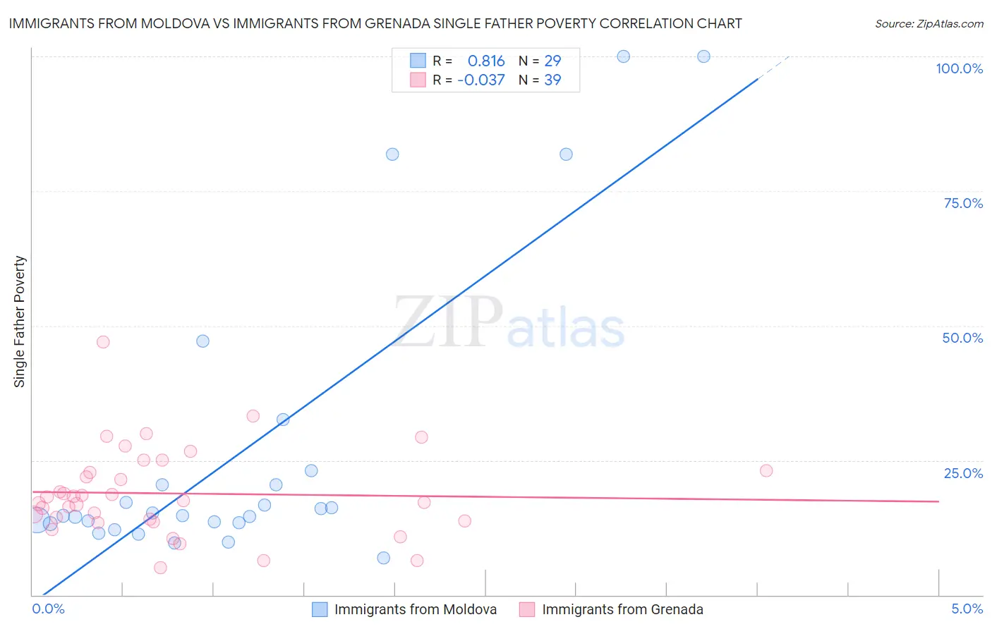 Immigrants from Moldova vs Immigrants from Grenada Single Father Poverty Correlation Chart
