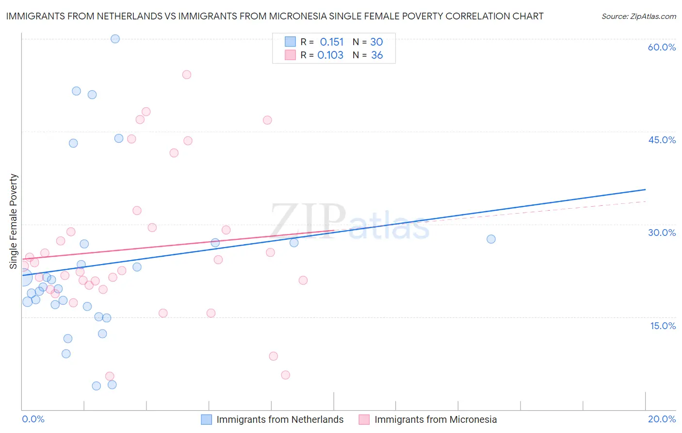 Immigrants from Netherlands vs Immigrants from Micronesia Single Female Poverty Correlation Chart