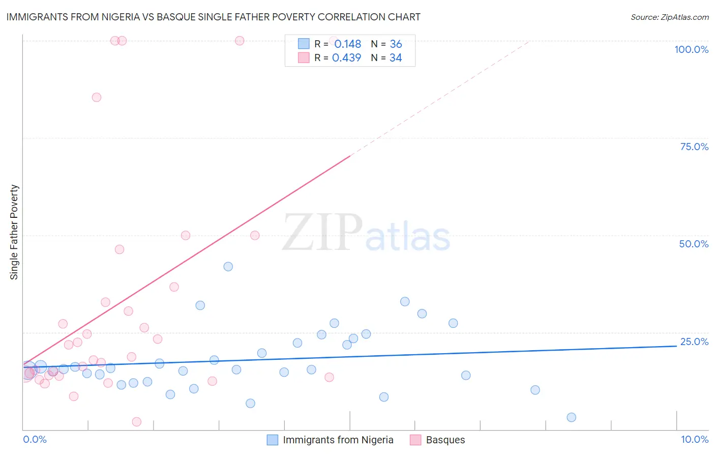 Immigrants from Nigeria vs Basque Single Father Poverty Correlation Chart