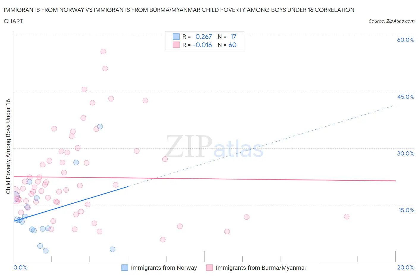 Immigrants from Norway vs Immigrants from Burma/Myanmar Child Poverty Among Boys Under 16 Correlation Chart