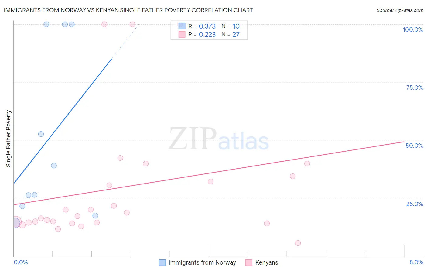 Immigrants from Norway vs Kenyan Single Father Poverty Correlation Chart