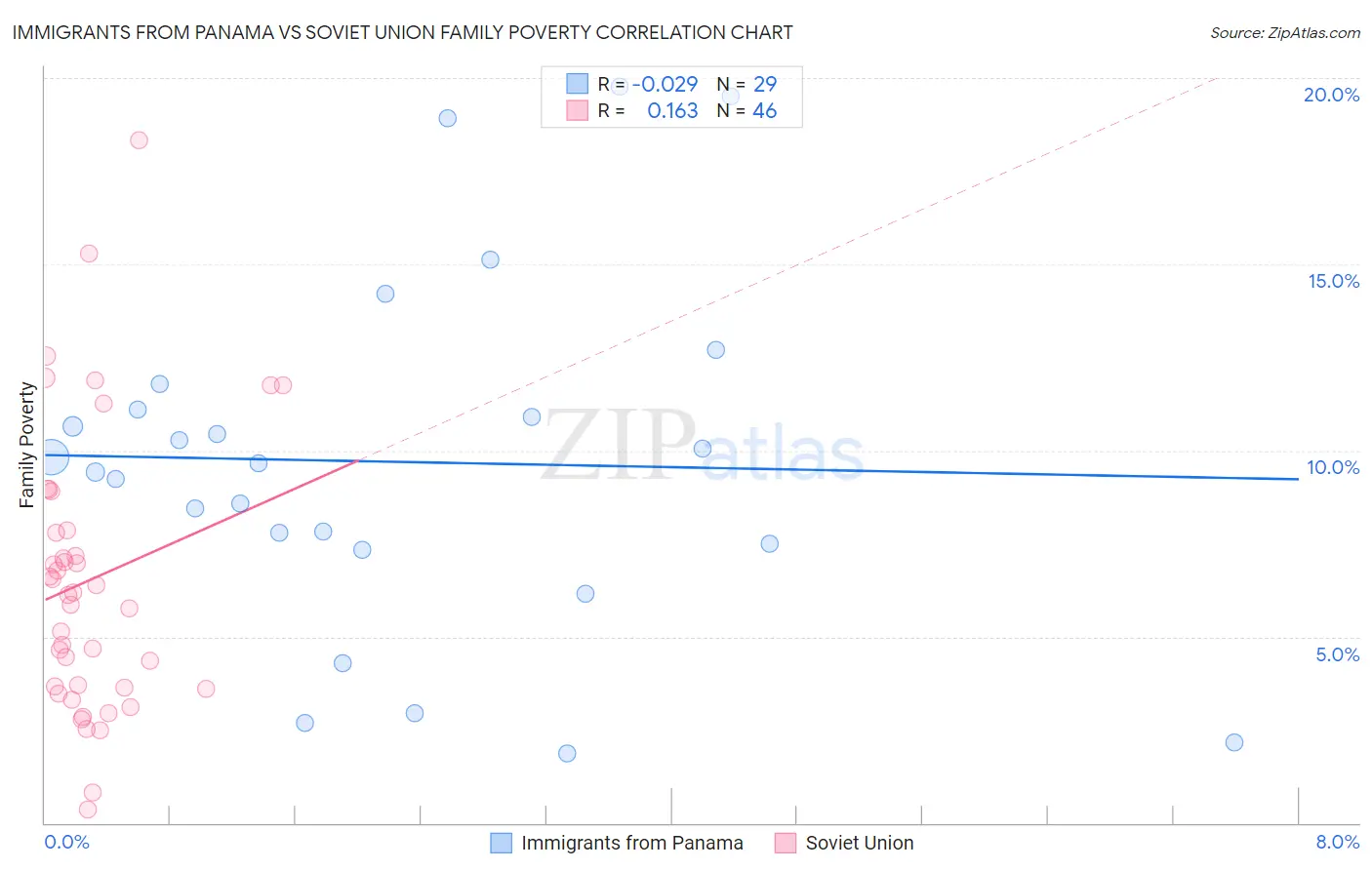 Immigrants from Panama vs Soviet Union Family Poverty Correlation Chart