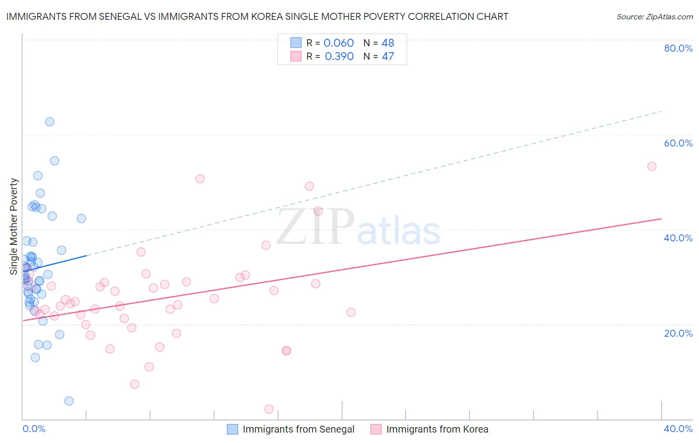 Immigrants from Senegal vs Immigrants from Korea Single Mother Poverty Correlation Chart