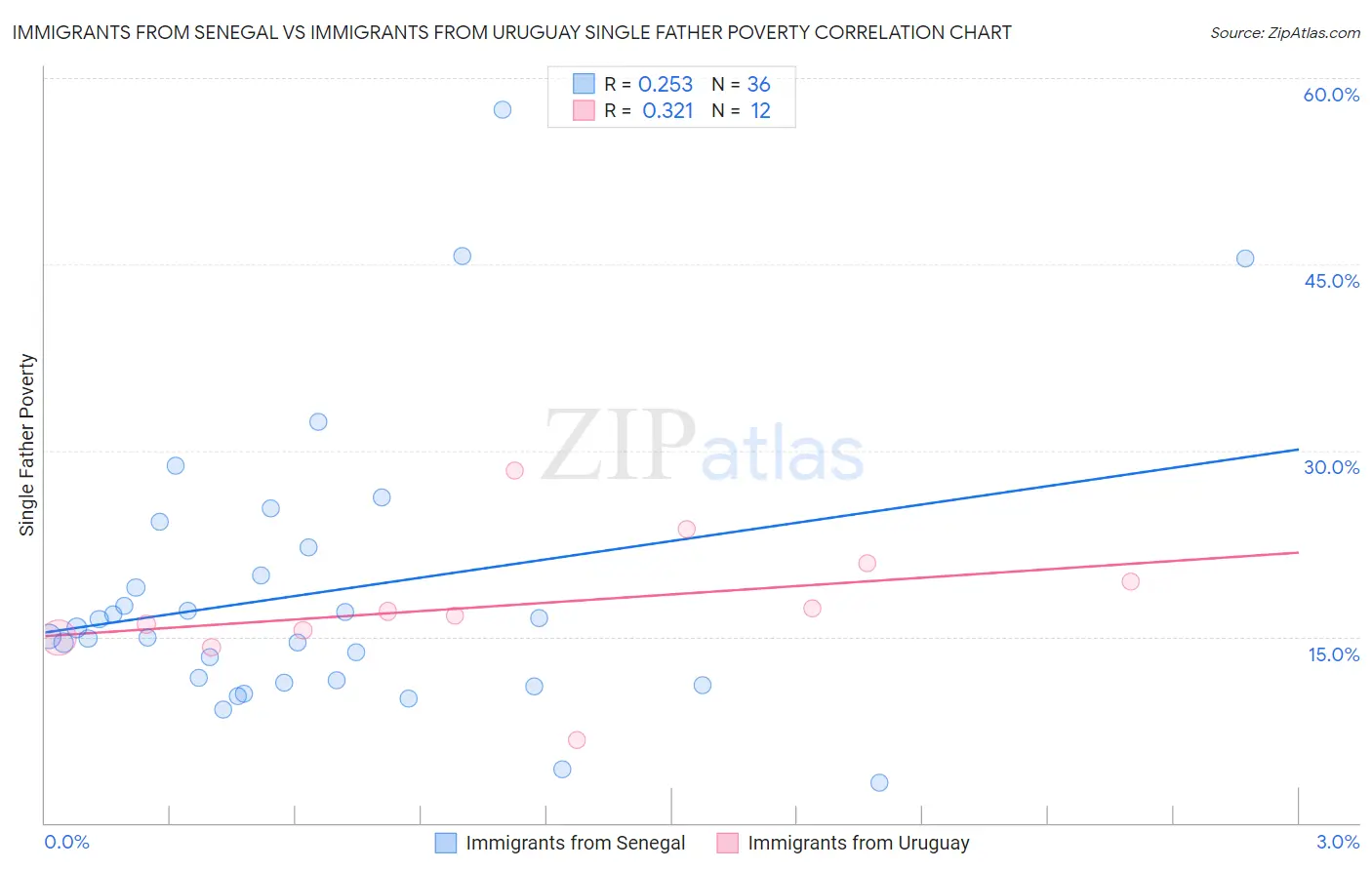 Immigrants from Senegal vs Immigrants from Uruguay Single Father Poverty Correlation Chart