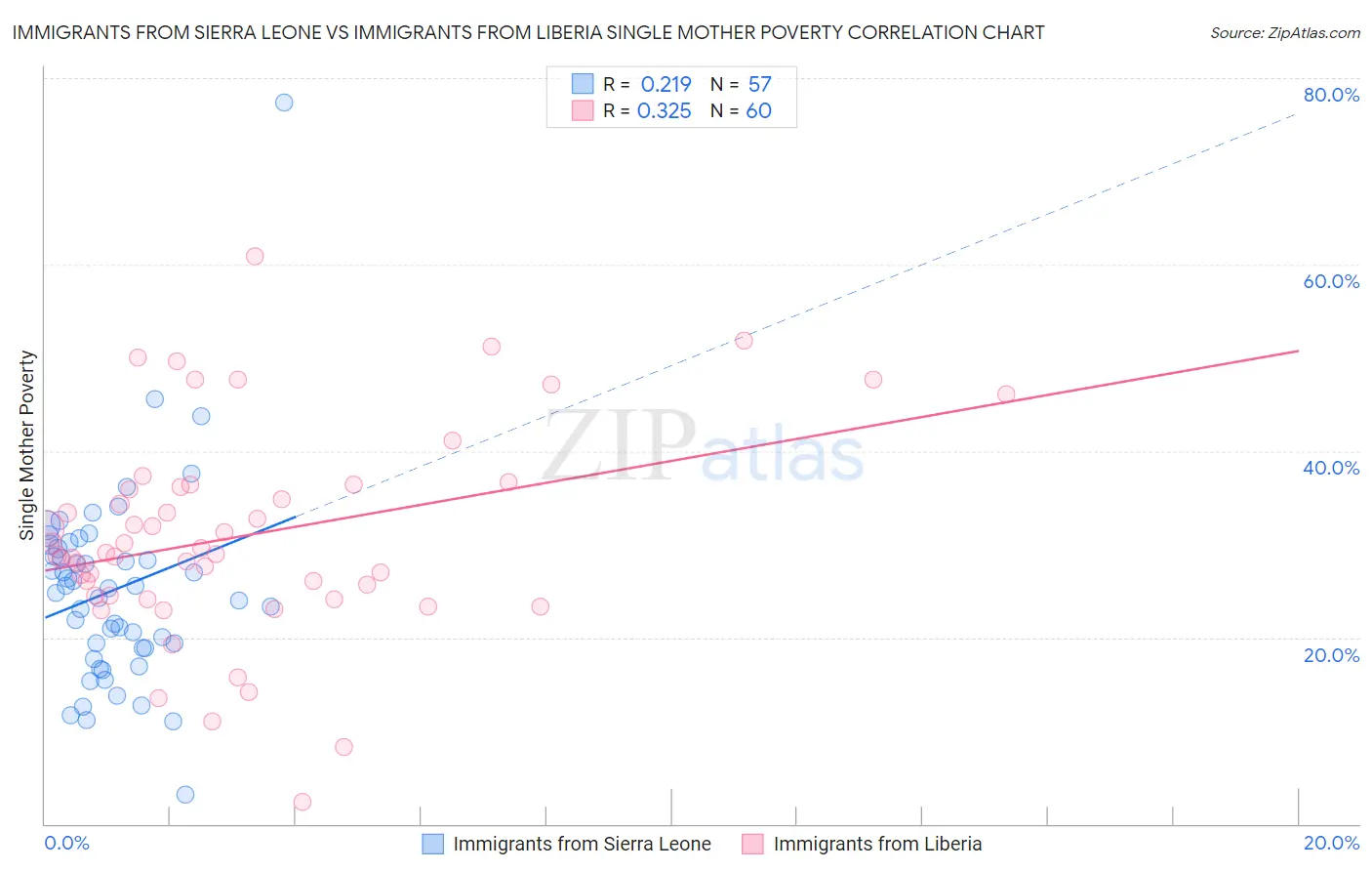 Immigrants from Sierra Leone vs Immigrants from Liberia Single Mother Poverty Correlation Chart