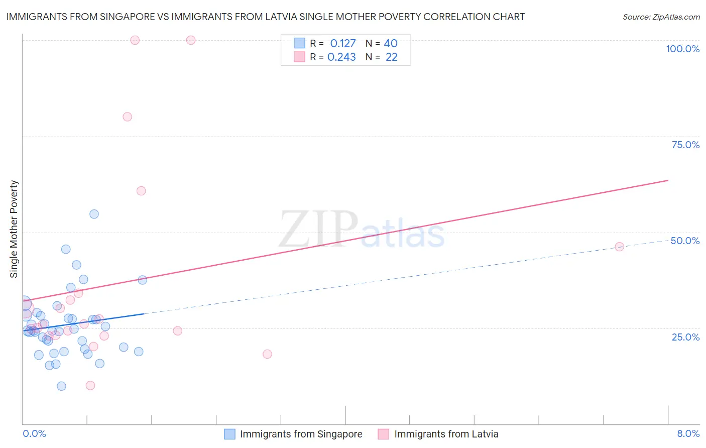 Immigrants from Singapore vs Immigrants from Latvia Single Mother Poverty Correlation Chart