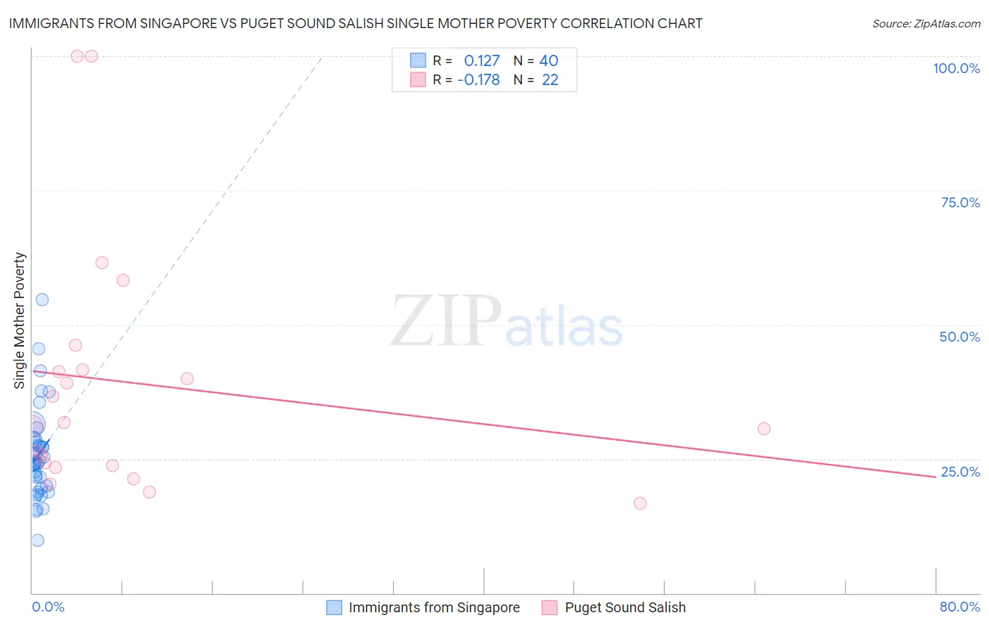 Immigrants from Singapore vs Puget Sound Salish Single Mother Poverty Correlation Chart