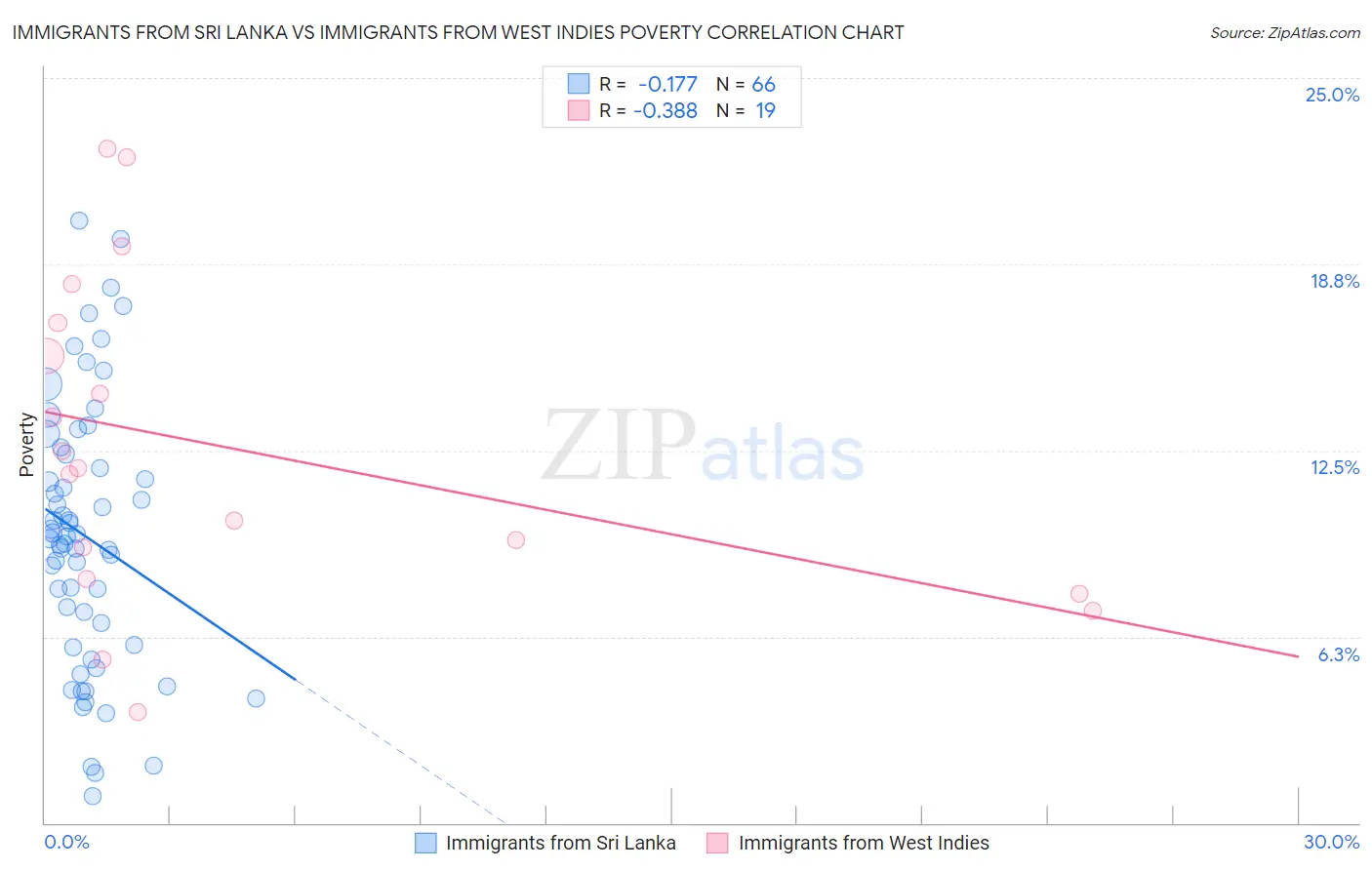 Immigrants from Sri Lanka vs Immigrants from West Indies Poverty Correlation Chart