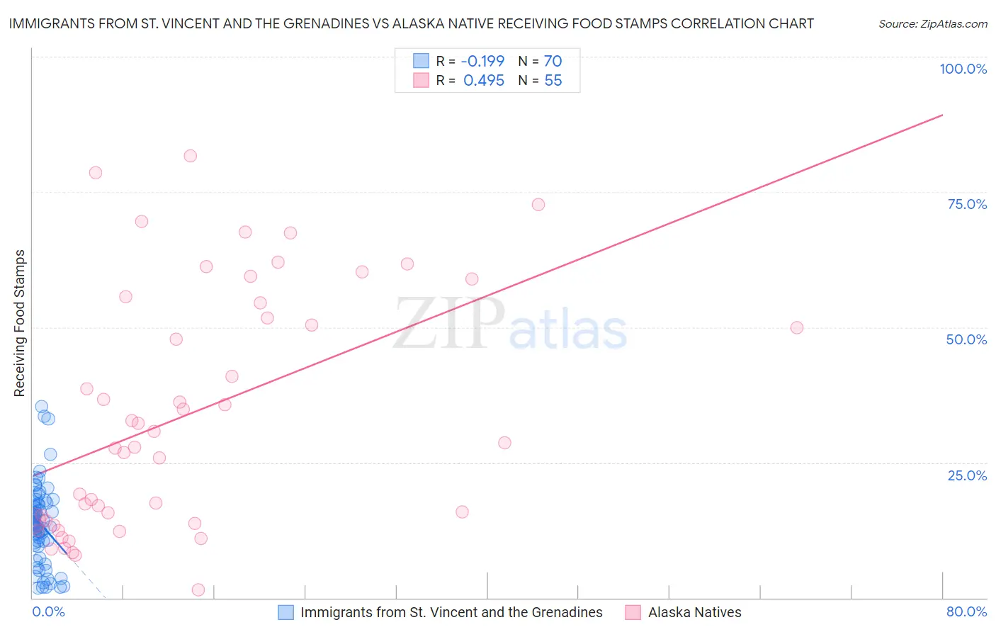 Immigrants from St. Vincent and the Grenadines vs Alaska Native Receiving Food Stamps Correlation Chart