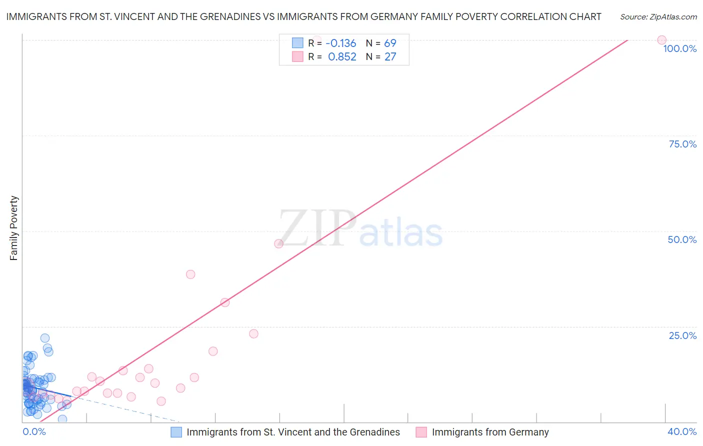 Immigrants from St. Vincent and the Grenadines vs Immigrants from Germany Family Poverty Correlation Chart