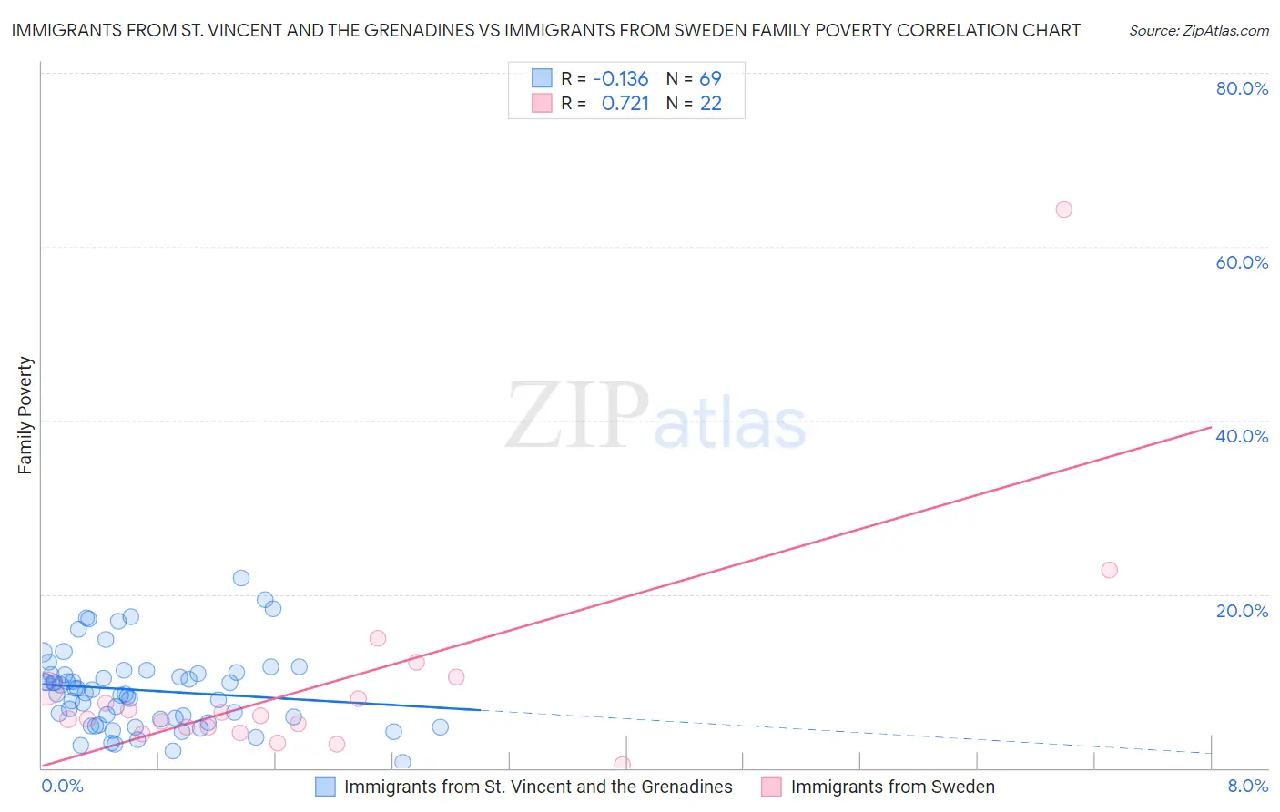 Immigrants from St. Vincent and the Grenadines vs Immigrants from Sweden Family Poverty Correlation Chart